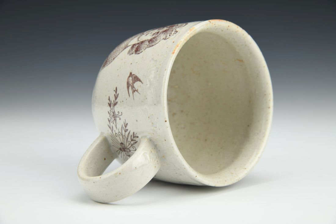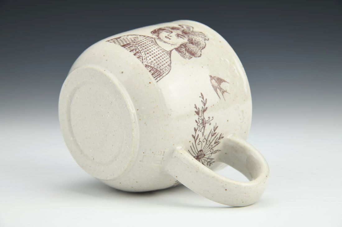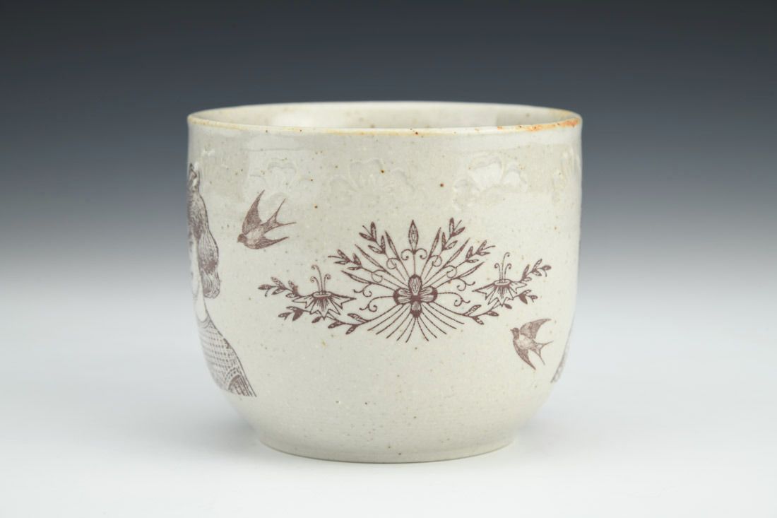Stoneware, wheel thrown, shino glaze, oxide decals, reduction fired, 3 x 5 x 3.75 inches.