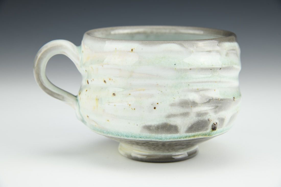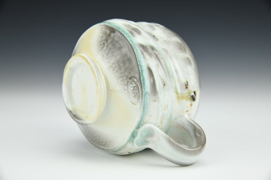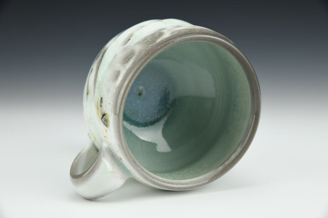 Porcelain and sand, wheel thrown, cone 10 soda fired, 3 x 5 x 4.25 inches.
