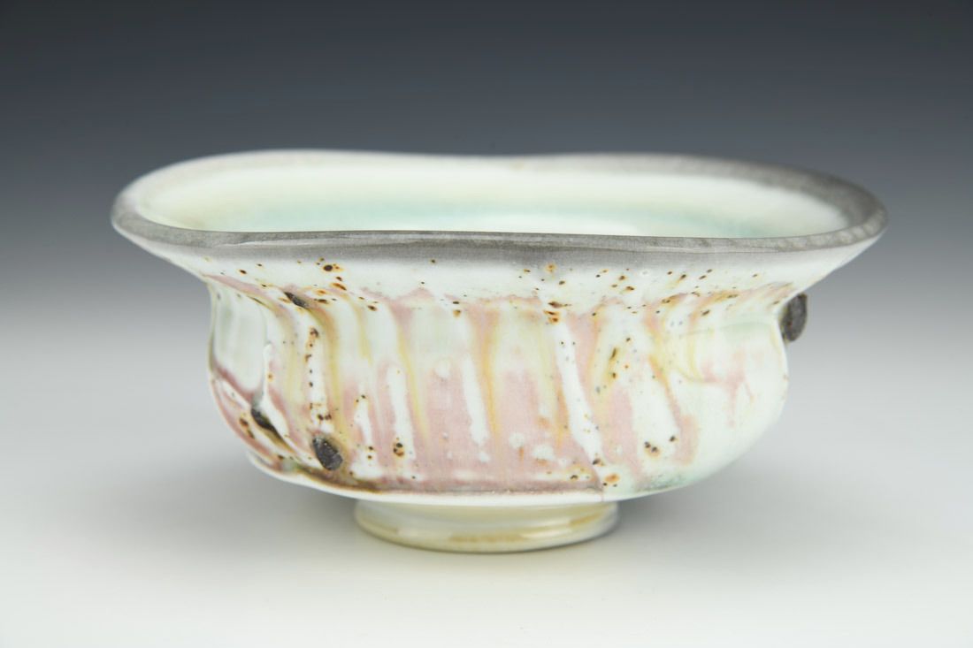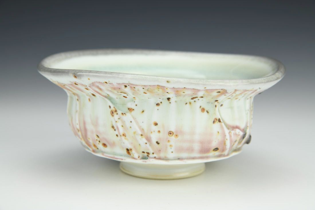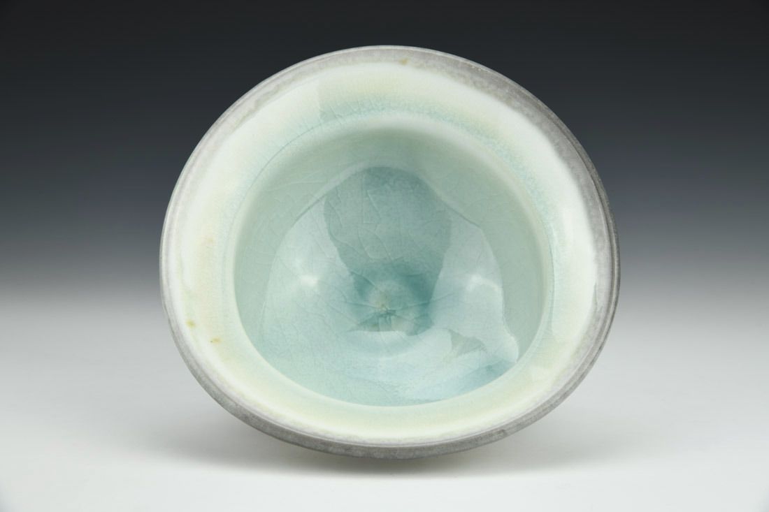 Porcelain, cone 10 reduction and soda fired, 2.75 x 5.75 x 5.75 inches.