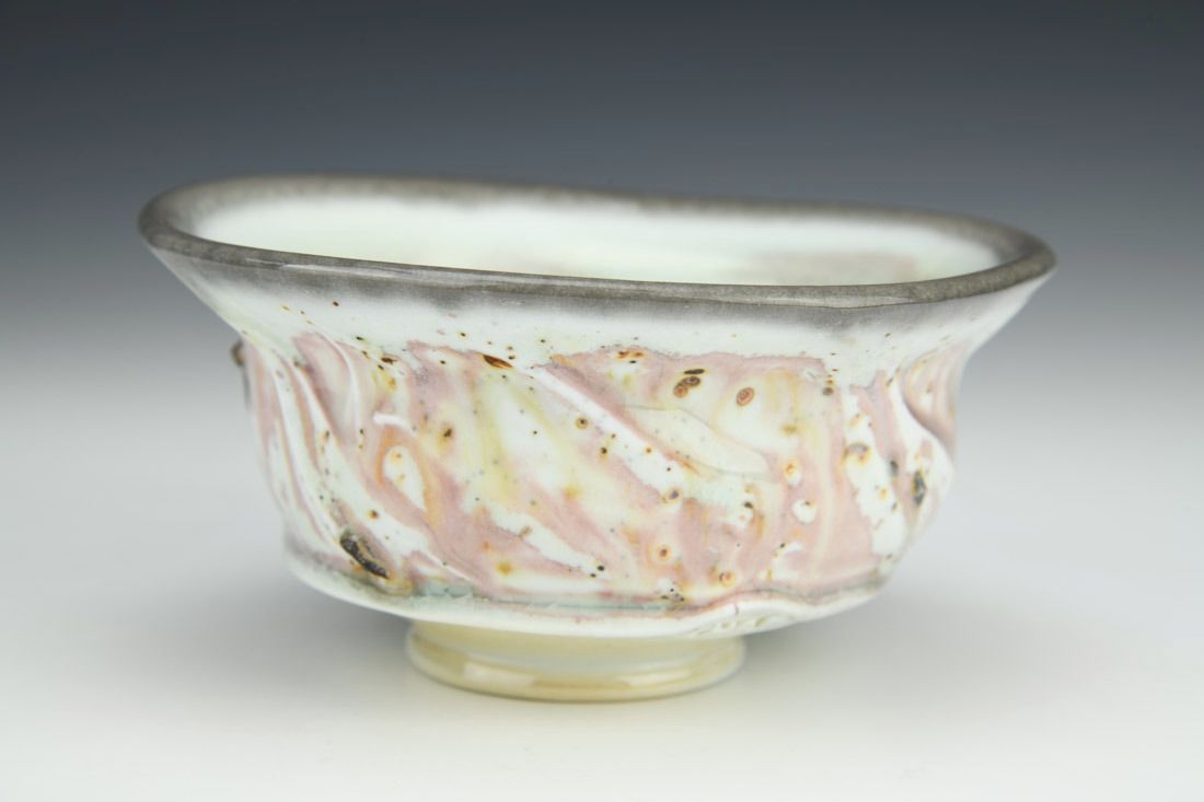 Porcelain, cone 10 reduction and soda fired, 2.5 x 5.25 x 5.25 inches.