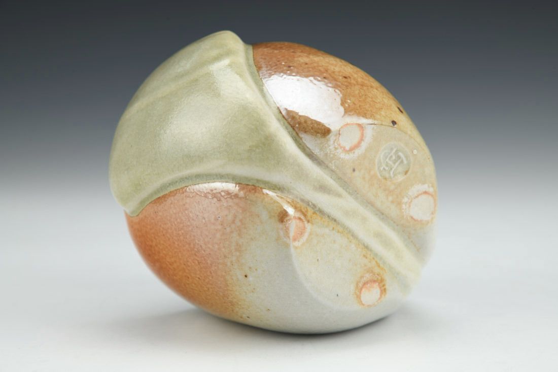 Helmer Porcelain, wheel thrown and altered, cone 10 reduction soda fired, 3.5 x 4.5 x 3.5 inches.