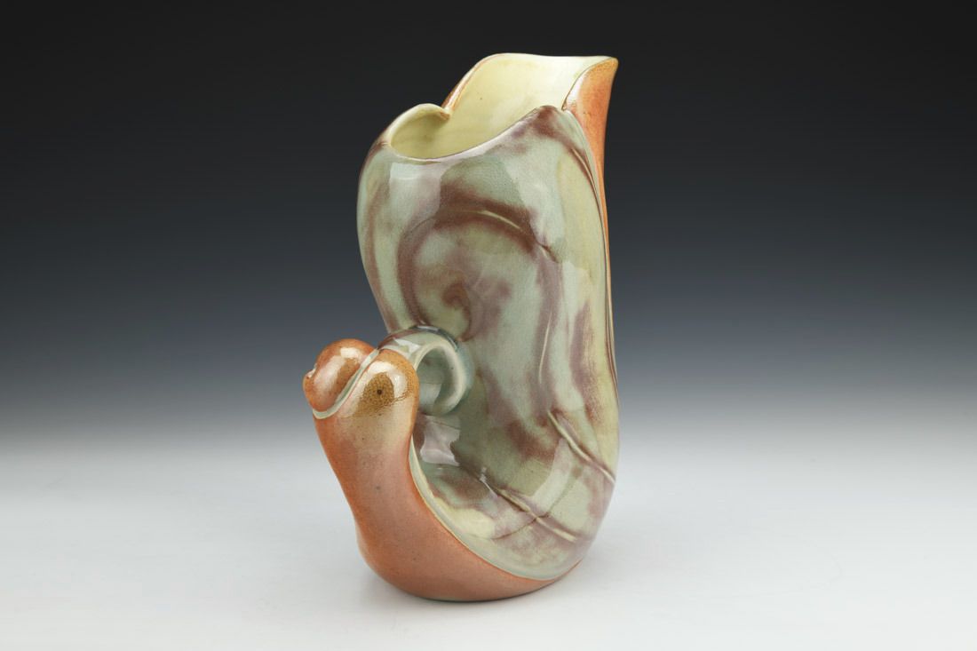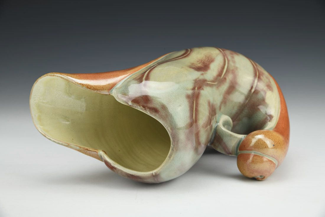 Helmer Porcelain, wheel thrown and altered, cone 10 reduction soda fired, 9.5 x 8 x 4.5 inches.