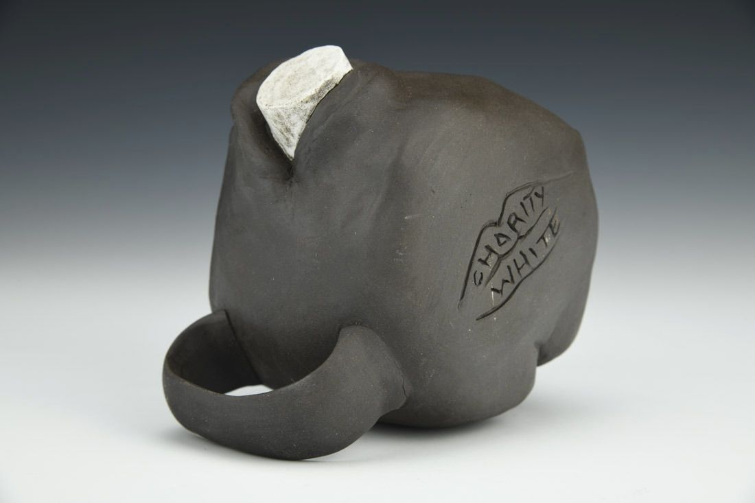 Mid-range stoneware, hand built, terra sigillata, underglaze, glaze, cone 5 oxidation fired, 3 x 4.75 x 4.25 inches.