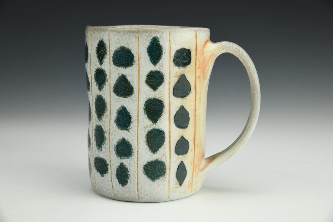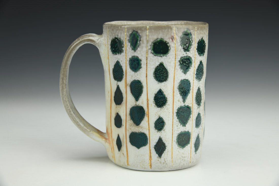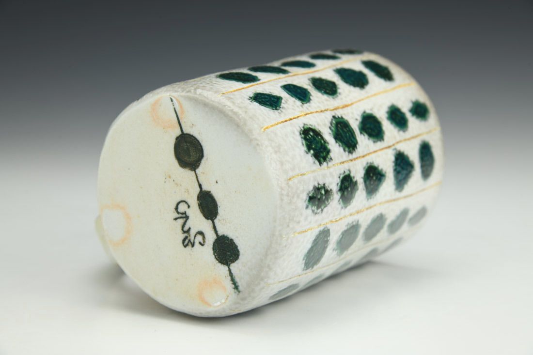 Porcelain, wheel thrown, flashing slips, cone 10 soda fired, 4.25 x 4.5 x 3 inches.