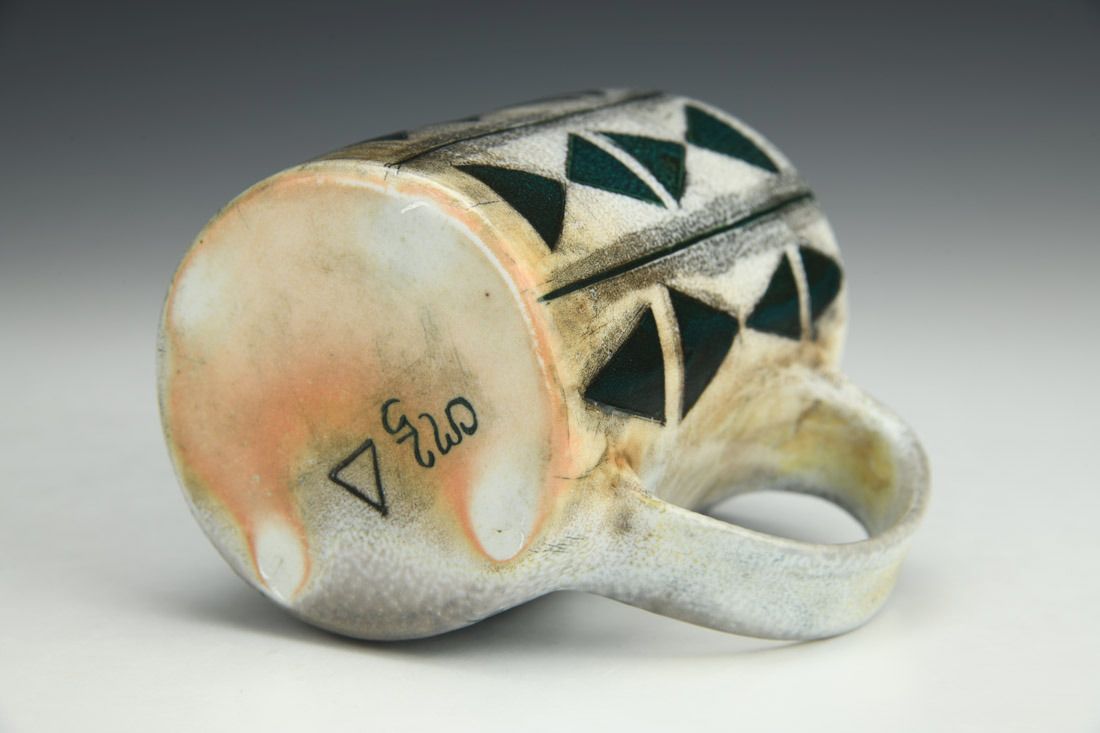 Porcelain, wheel thrown, flashing slips, cone 10 soda fired, 4.25 x 4.25 x 3 inches.