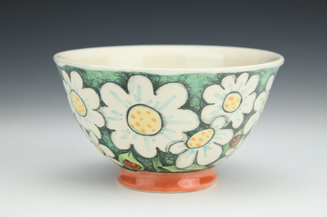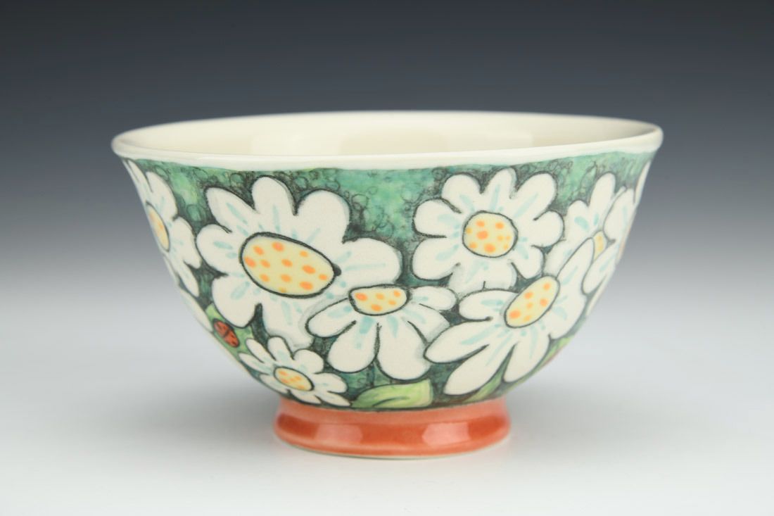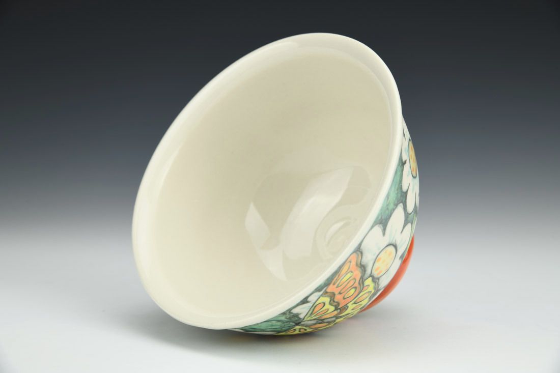 Porcelain, wheel thrown, underglaze pencil illustration, underglaze washes, cone 6 fired, 2.75 x 4.75 x 4.75 inches.