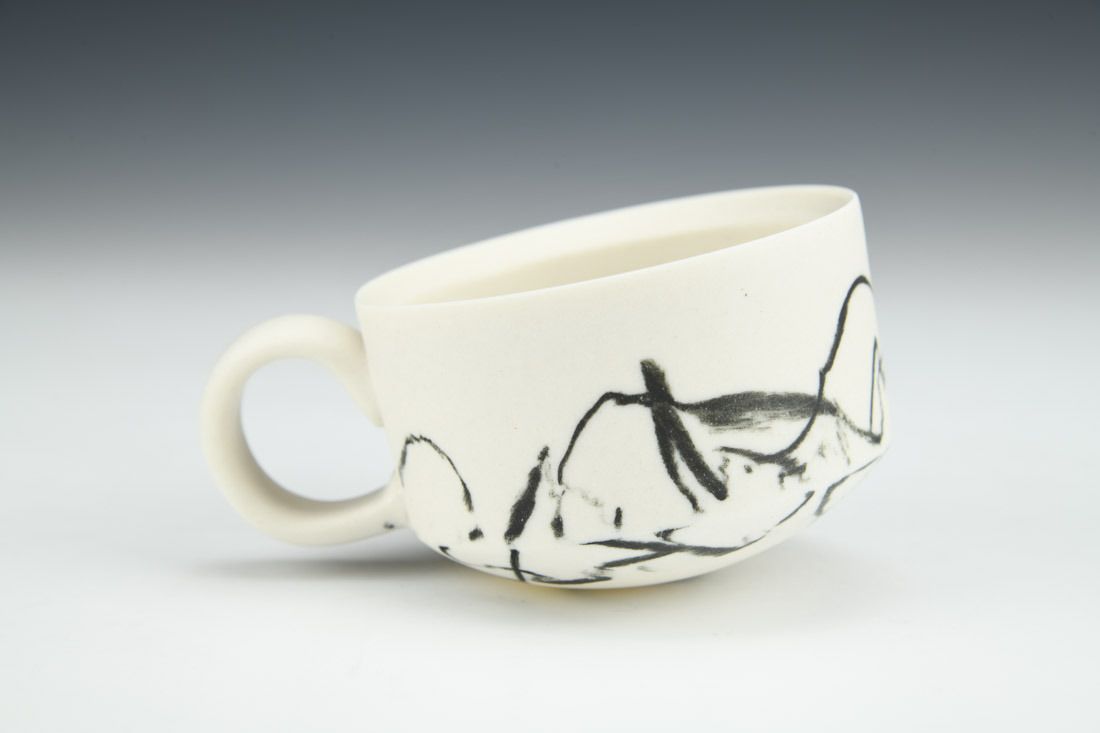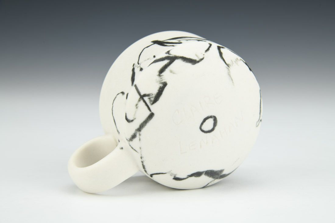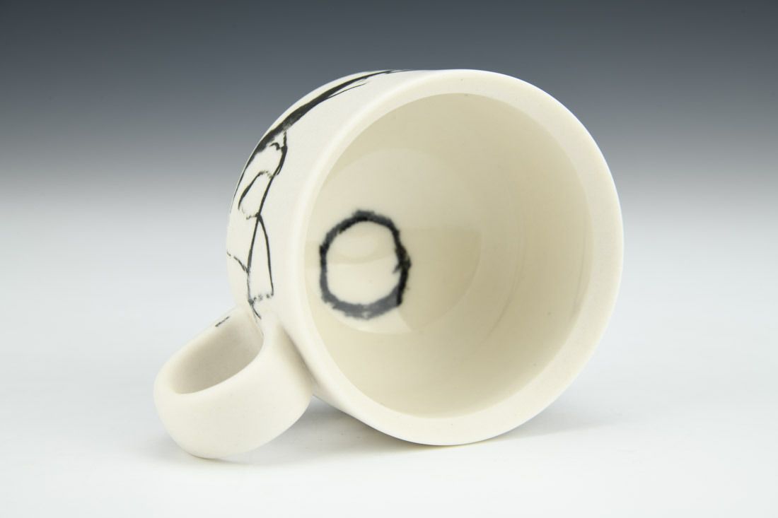 Porcelain, wheel thrown, underglaze chalk, glaze, cone 6 electric fired, sanded to 200 grit, 2.25 x 4 x 3 inches.