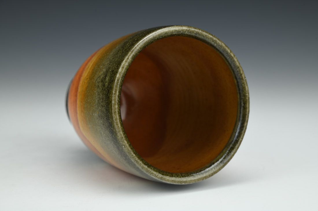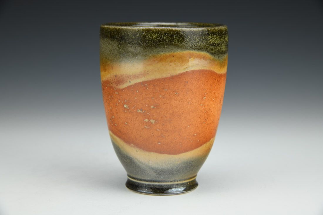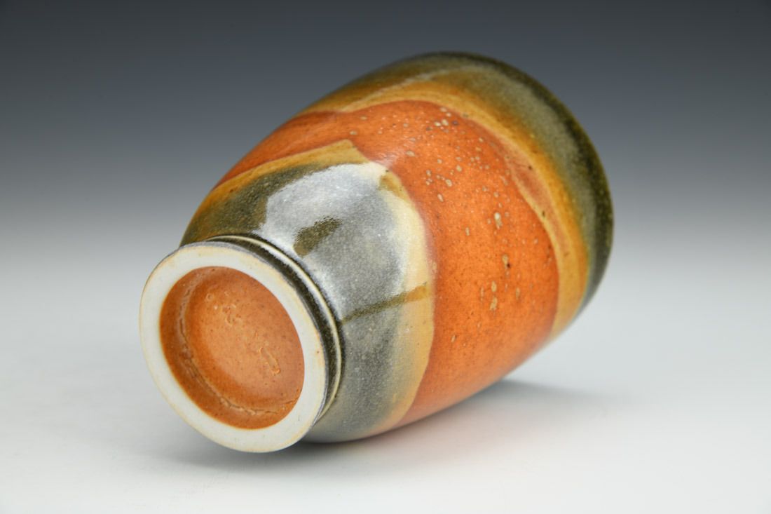 Porcelain, wheel thrown, shino glaze, cone 10 reduction fired, 4.25 x 3.25 x 3.25 inches.