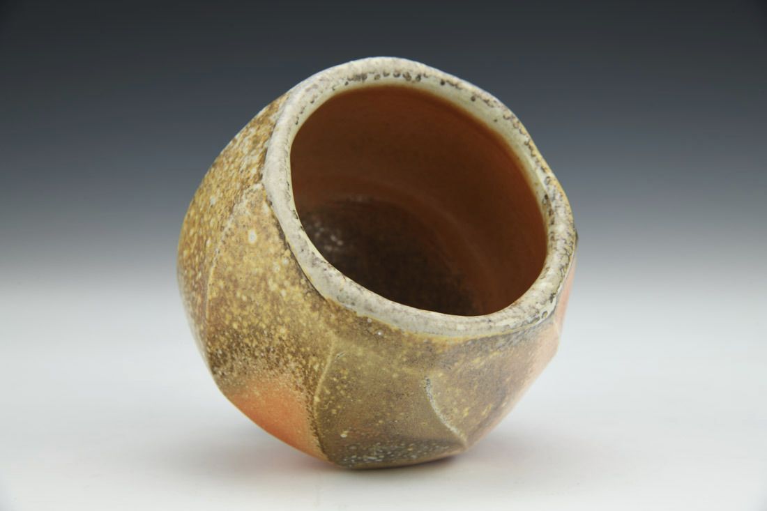 Porcelain, wheel thrown, faceted, wood and soda fired, 3.25 x 3.75 x 3.75 inches.