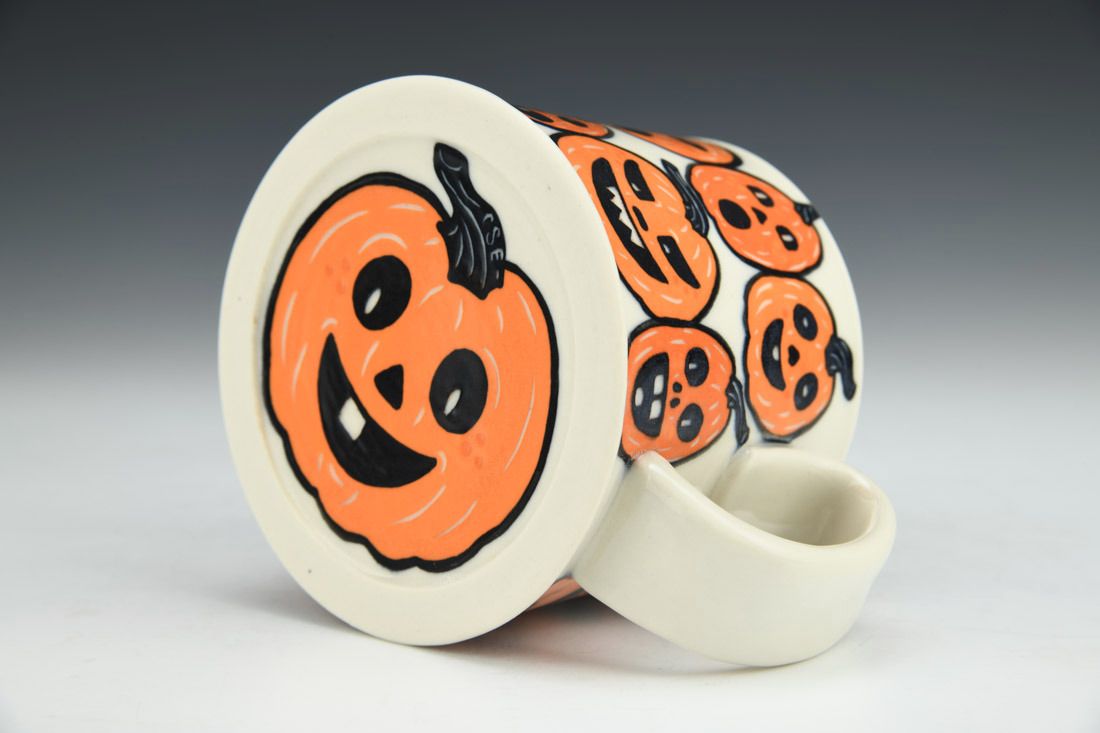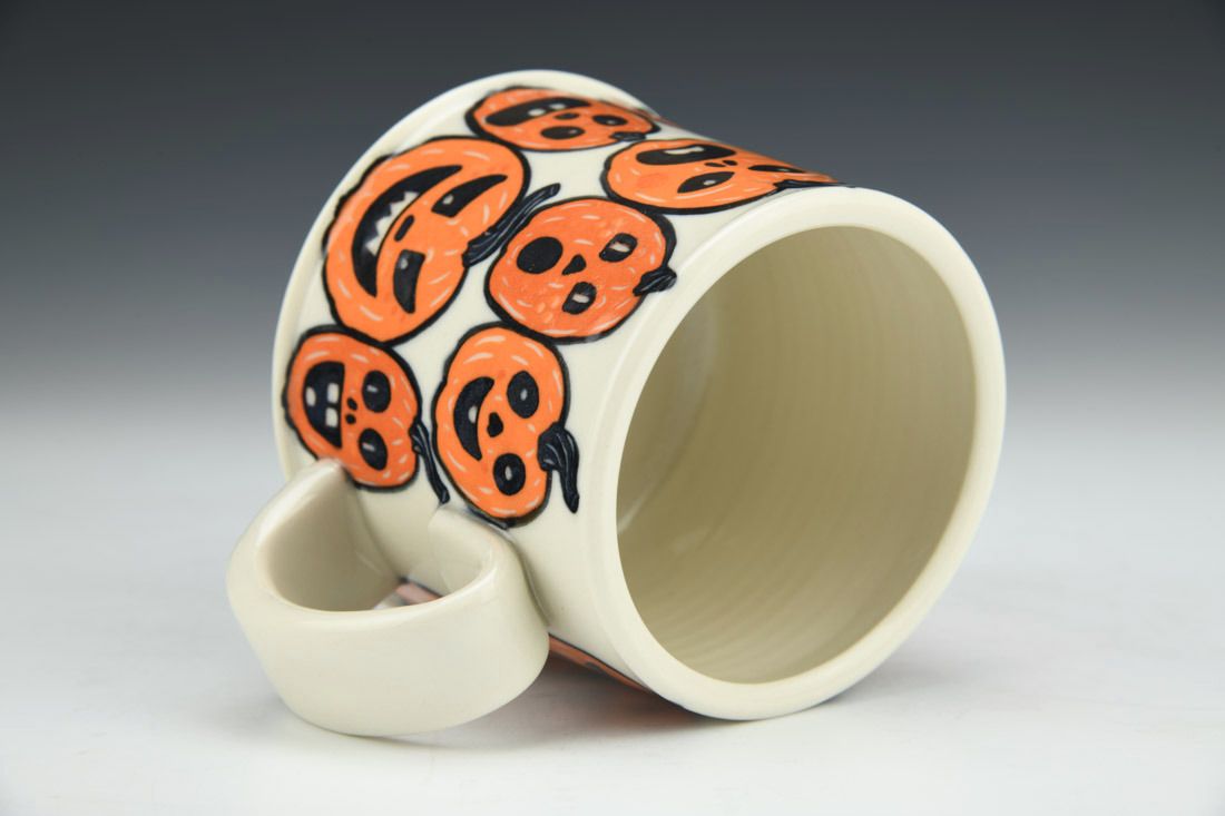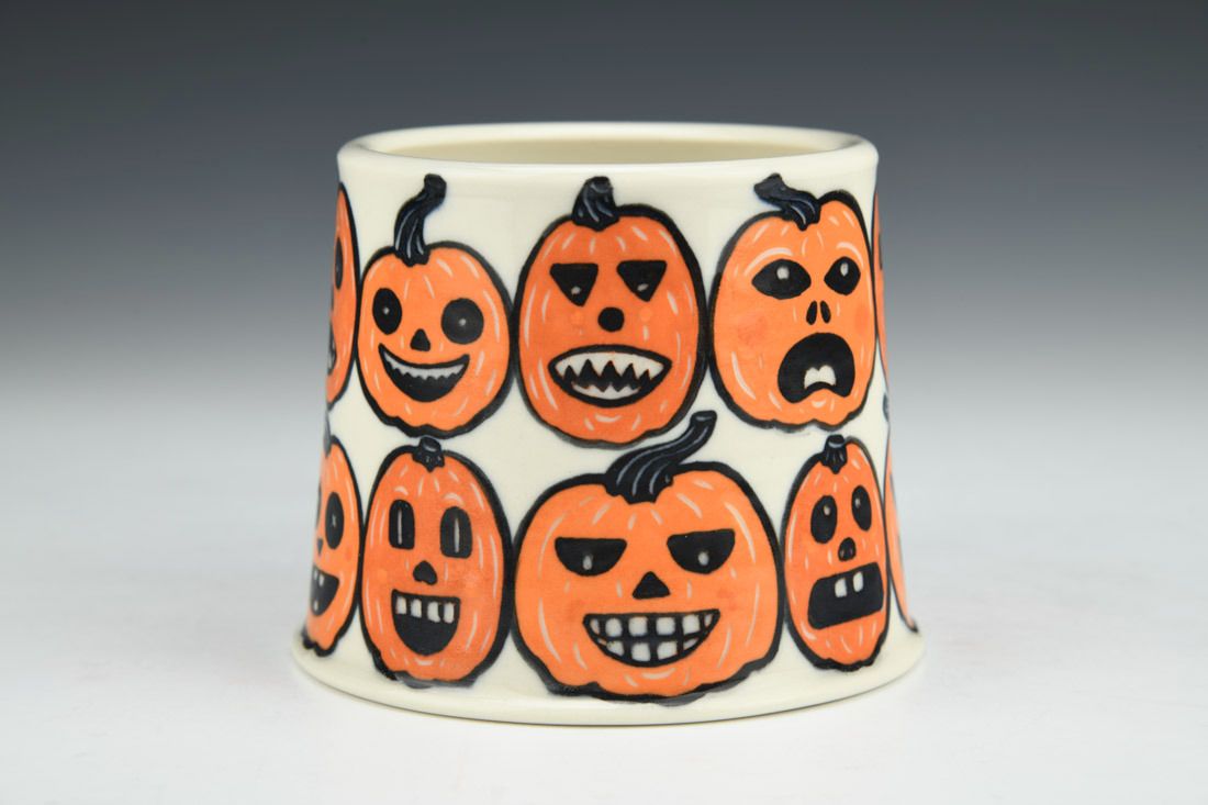 Porcelain, wheel thrown, hand painted, sgraffito, underglaze, clear glaze, cone 6 electric fired, 3.25 x 5 x 4 inches