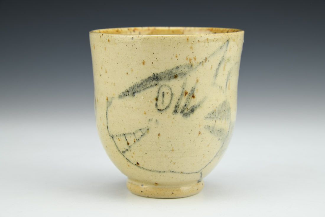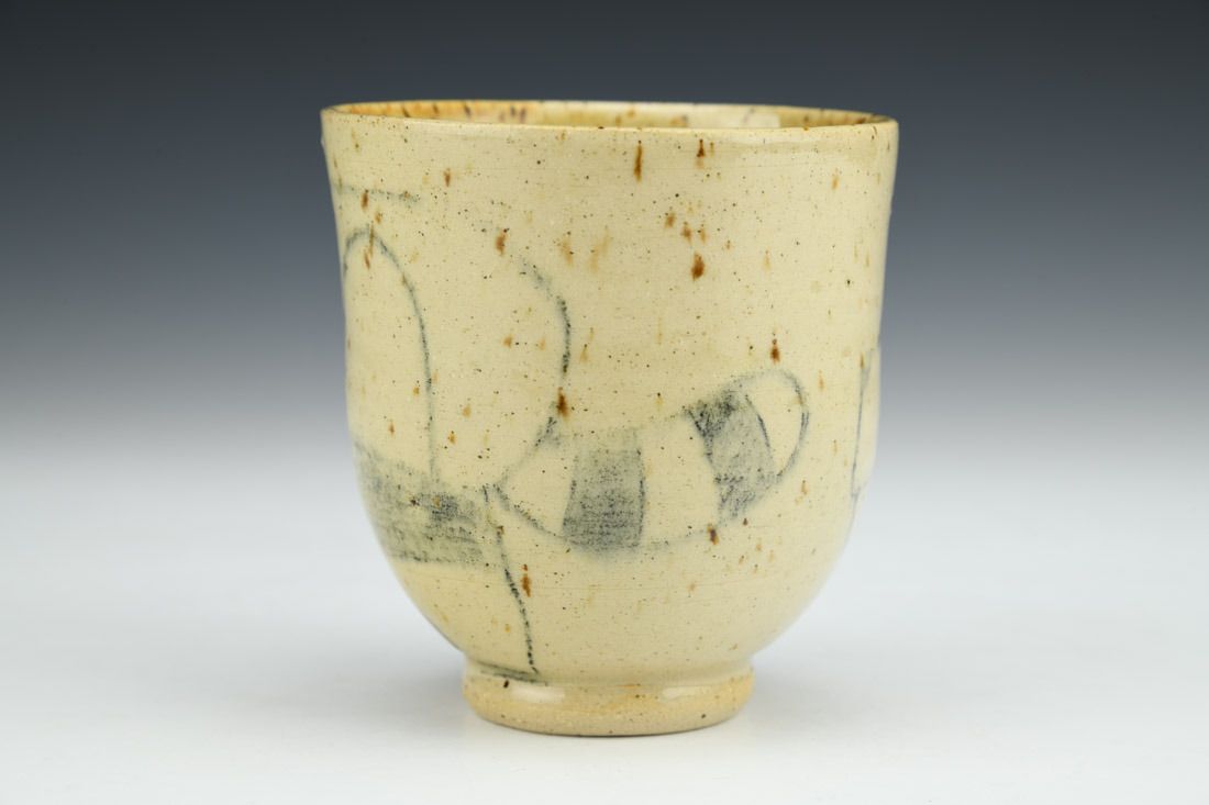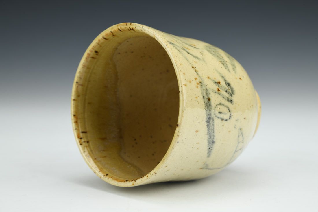 Speckled stoneware, wheel thrown, handrawn, underglaze pencil, cone 6 electric fired, 3.5 x 3.5 x 3.5 inches.