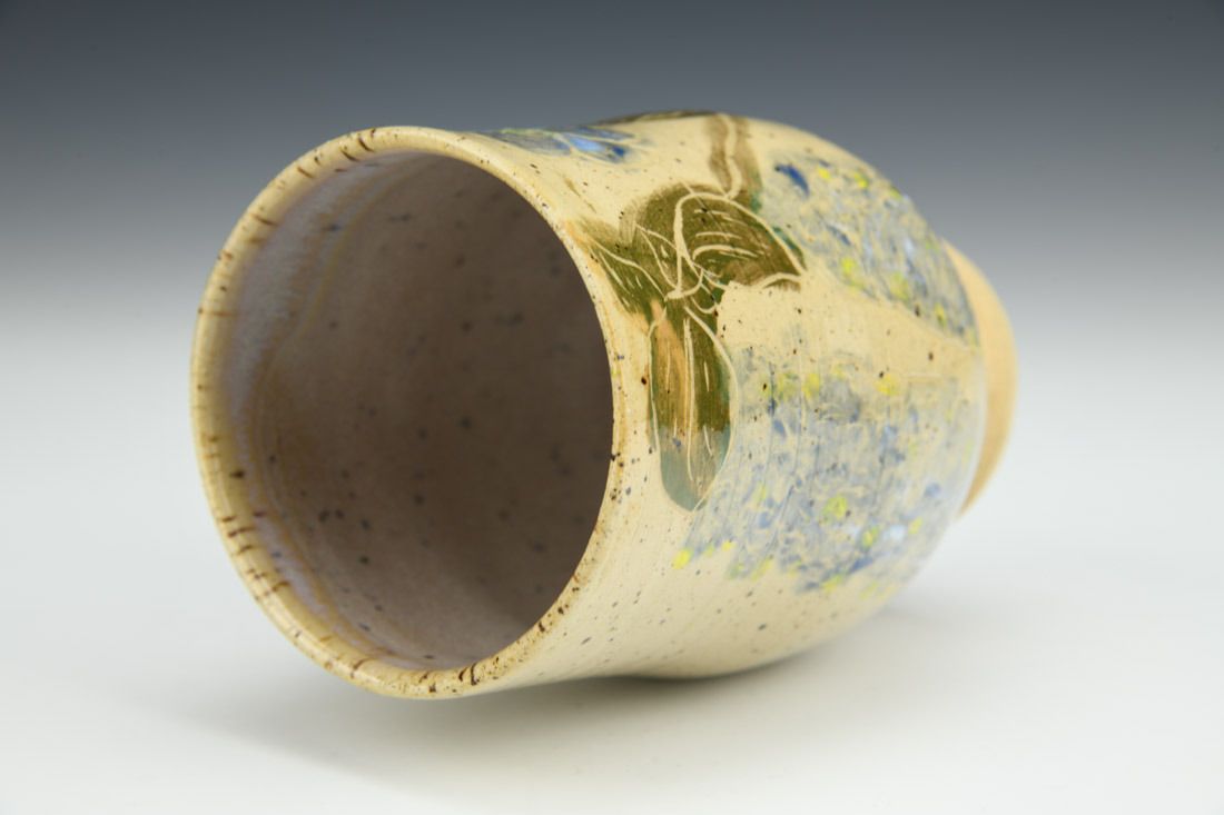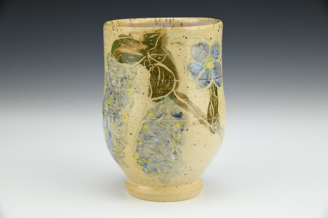 Speckled stoneware, wheel thrown, handrawn, sgraffito, amaco underglaze, cone 6 electric fired, 4.75 x 3.5 x 3.5 inches.