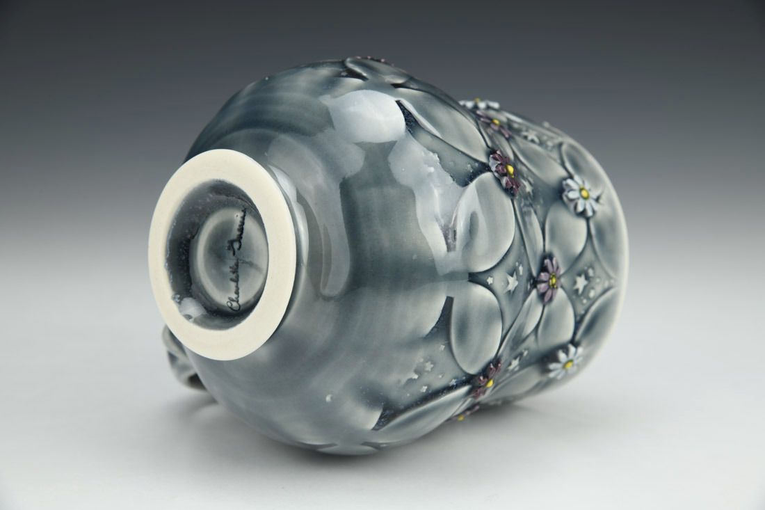 Porcelain and stained porcelain, wheel thrown and altered, cone 6 electric fired, 4.5 x 5.25 x 4 inches.