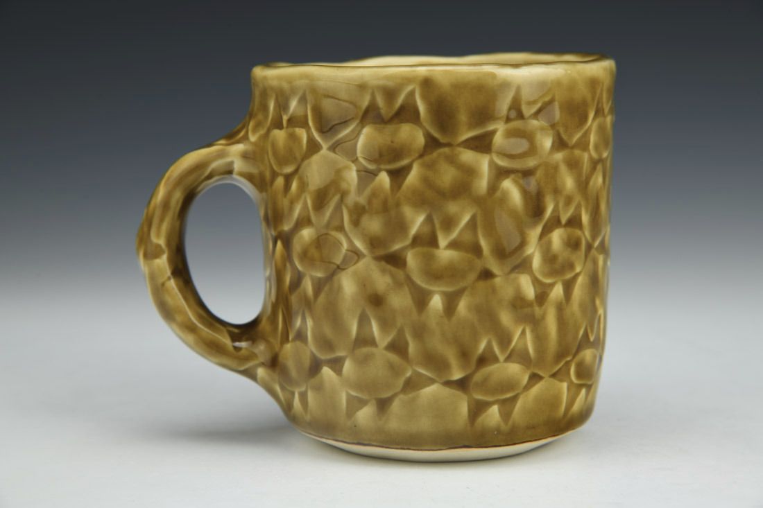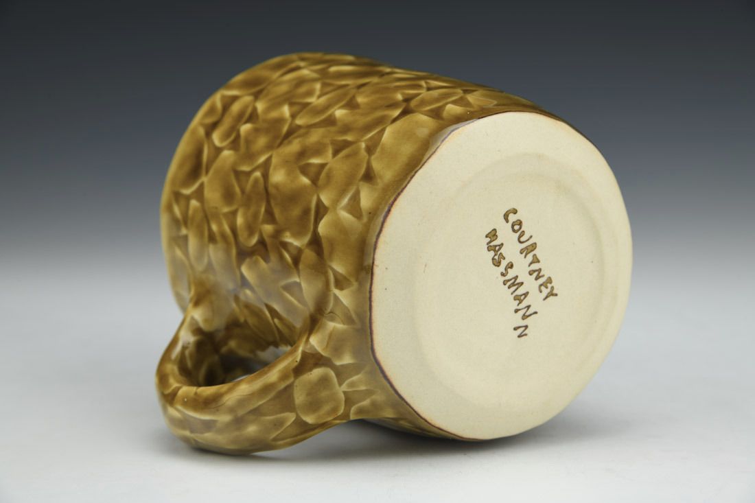 Stoneware, hand built and pinched, water etched, cone 6 fired, 3.5 x 4.5 x 3.5 inches.