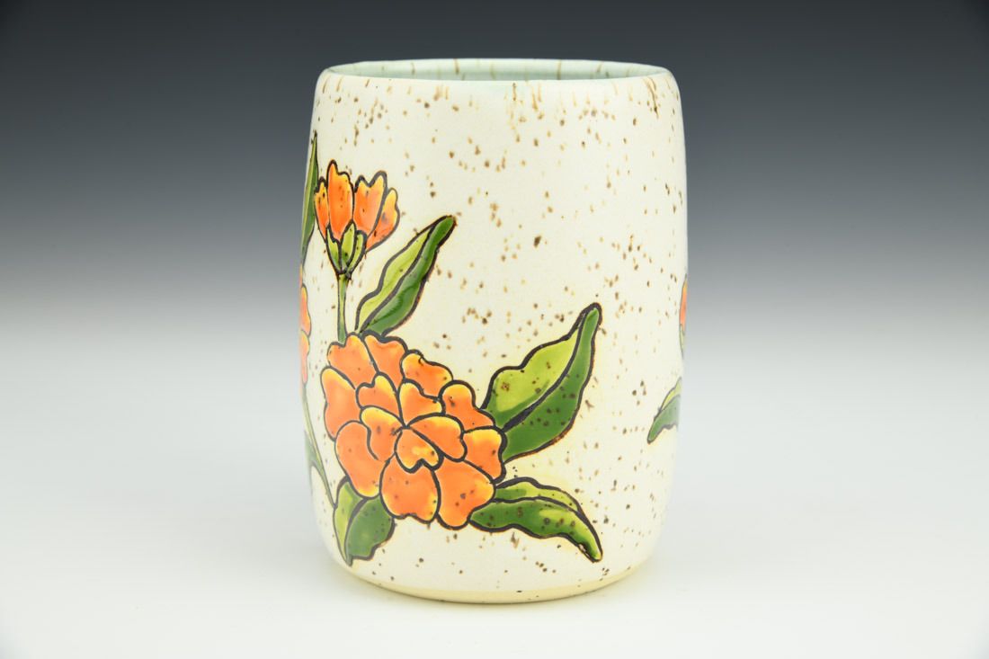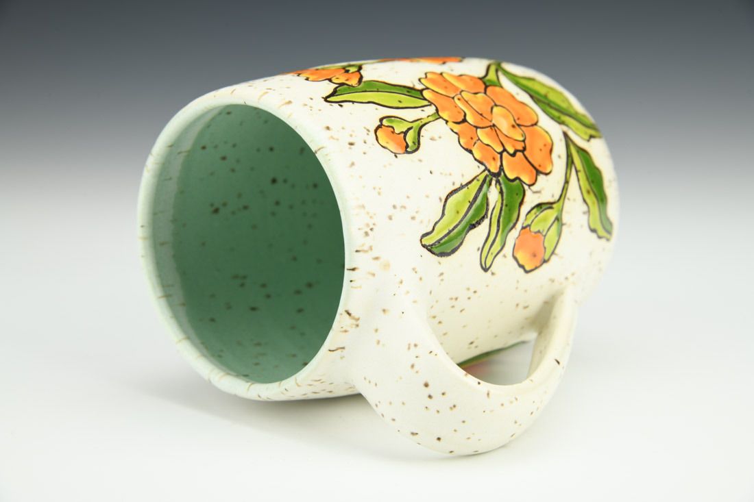 Stoneware, wheel thrown, cuerda seca, mid-range fired, 4.5 x 4.75 x 3.5 inches.