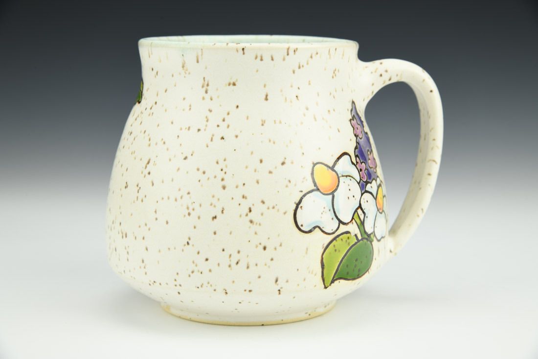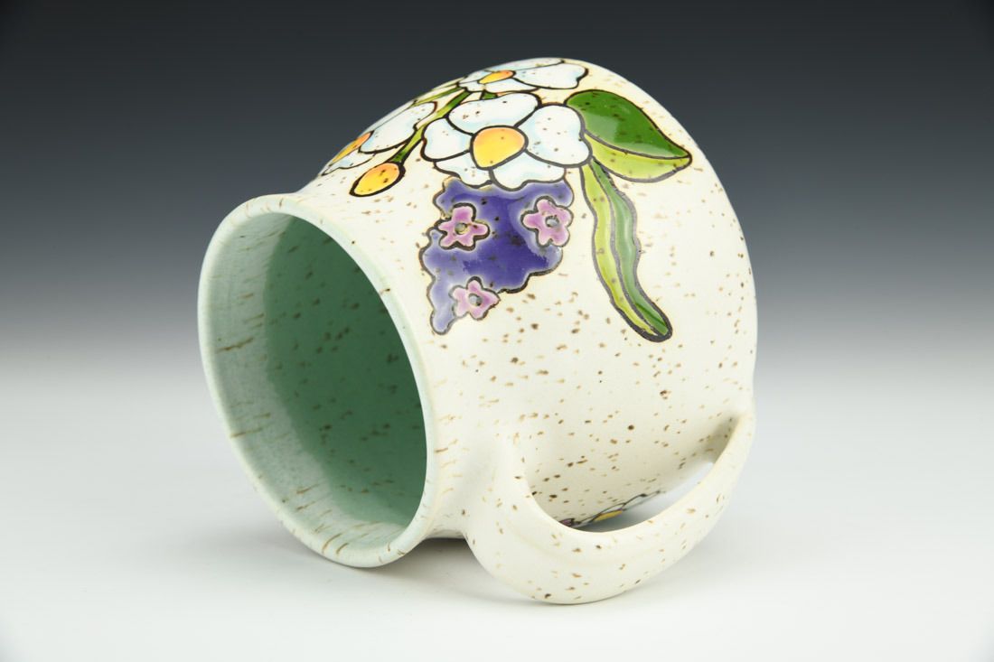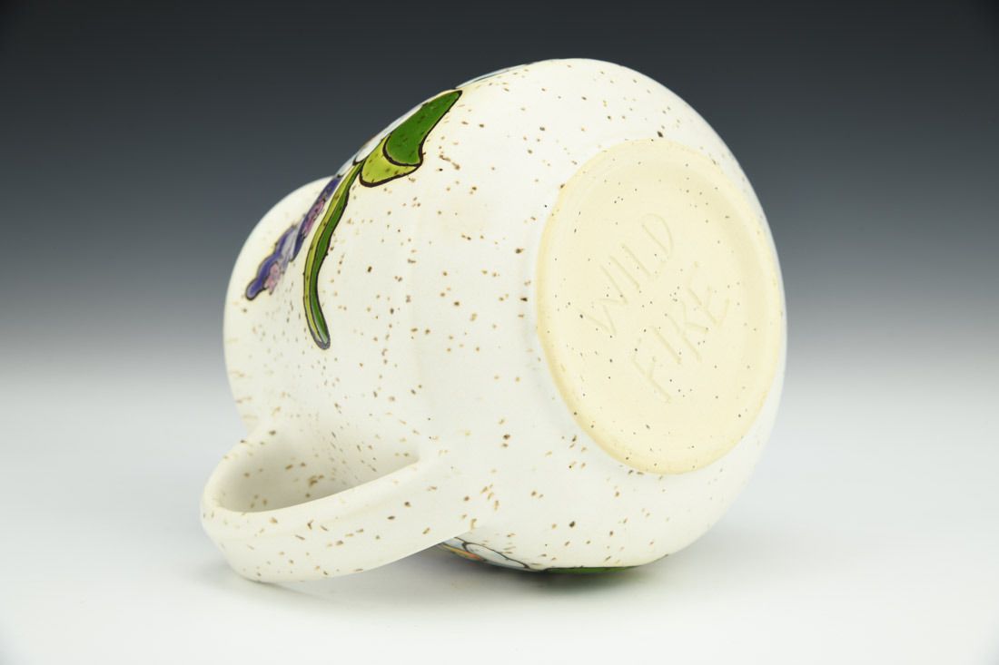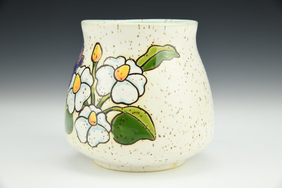 Stoneware, wheel thrown, cuerda seca, mid-range fired, 4.5 x 5.25 x 4.5 inches.