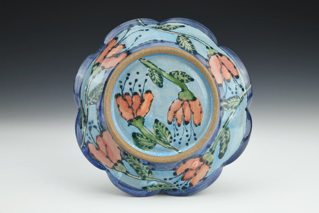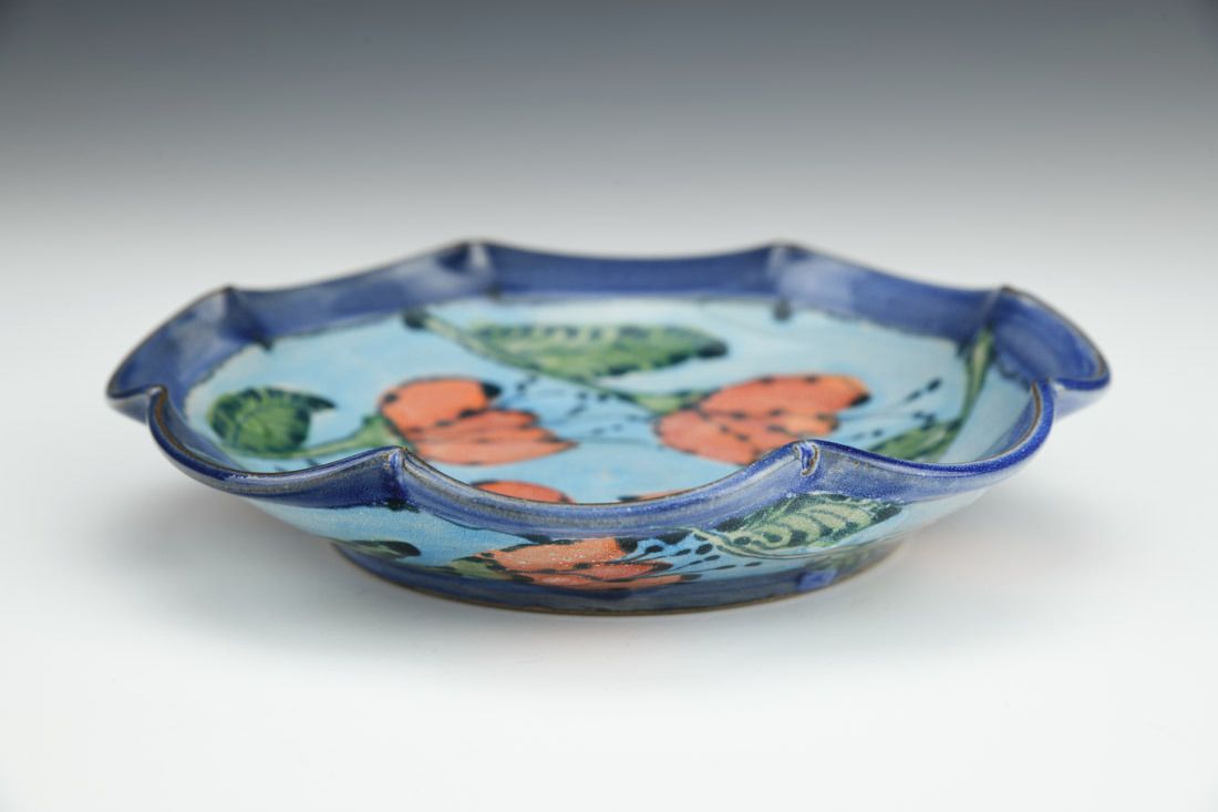 Red stoneware, wheel thrown, cone 6 electric fired, 1 x 6.5 x 6.5 inches.