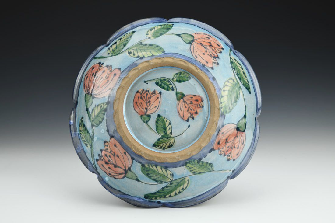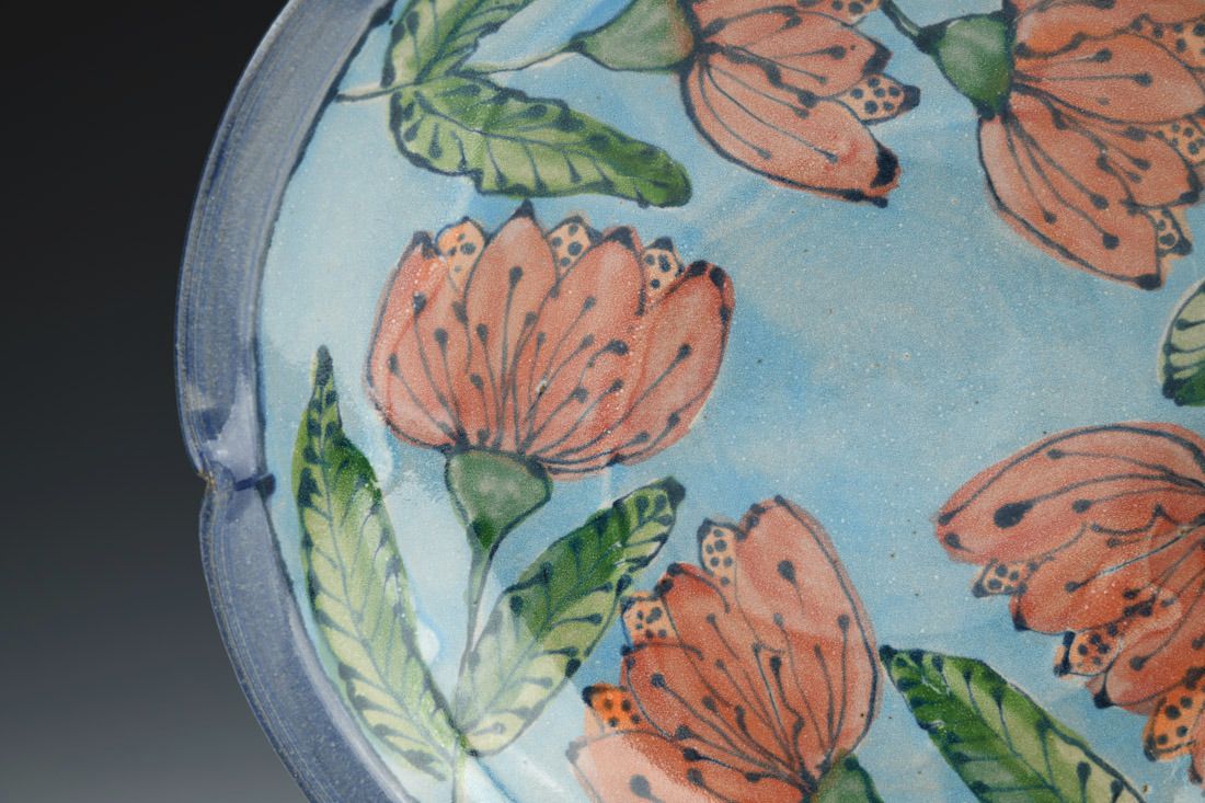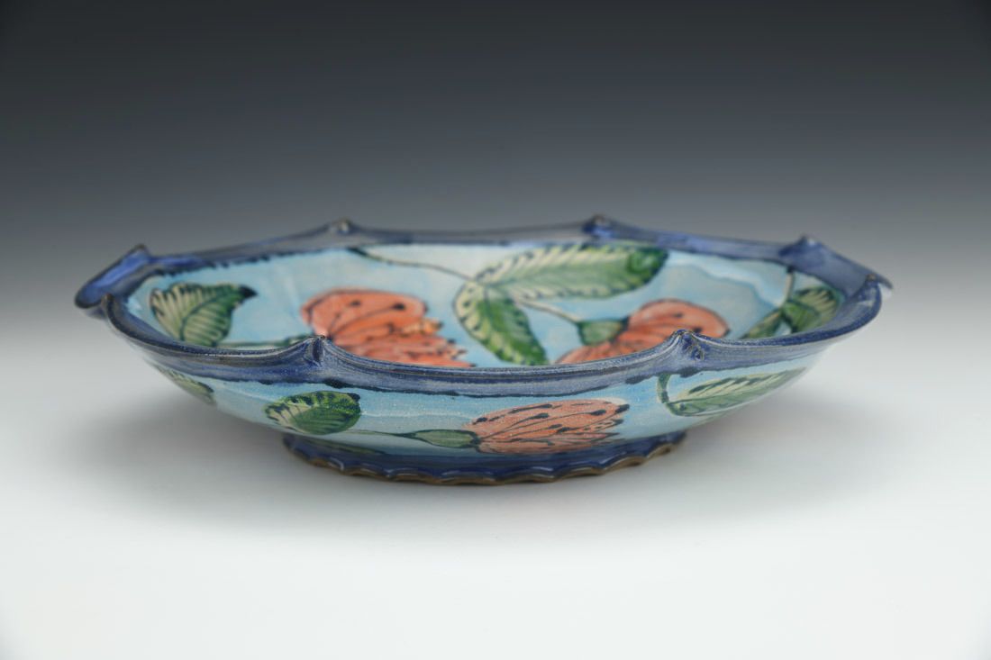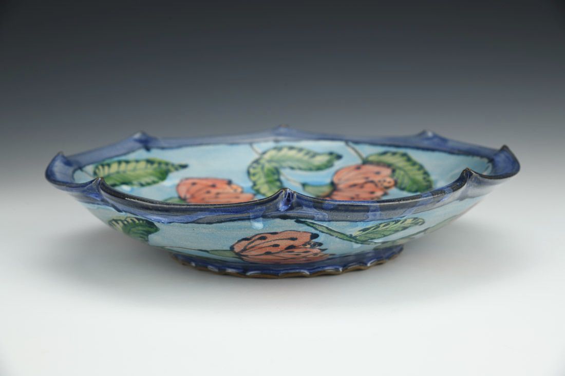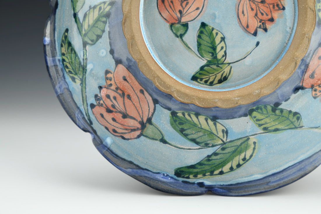 Red stoneware, wheel thrown, cone 6 electric fired, 2 x 9.5 x 9.5 inches.