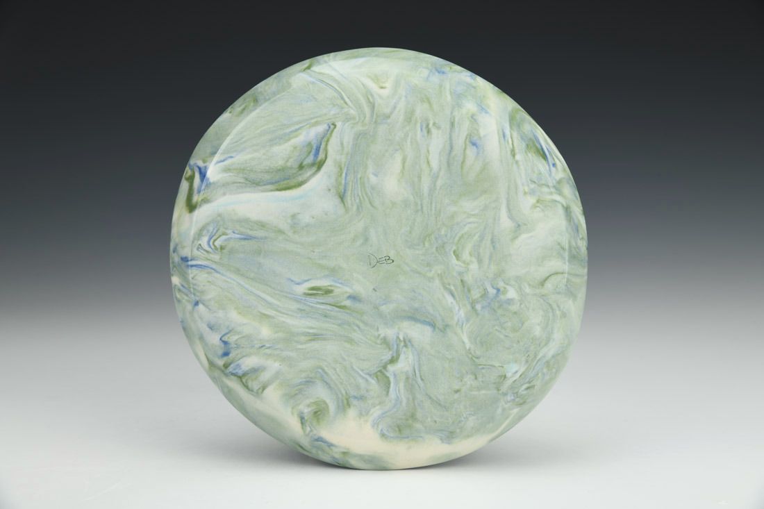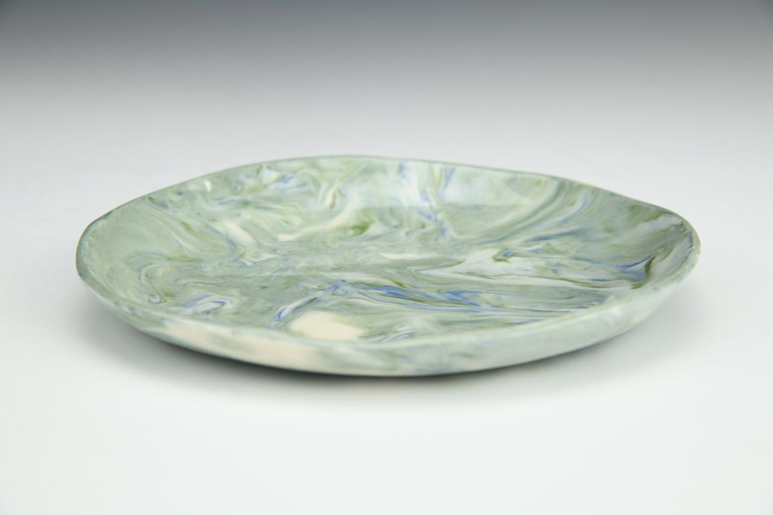 Porcelain, hand built with slabs, glaze, cone 6 oxidation fired, 0.5 x 5.5 x 5.5 inches.