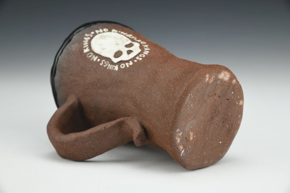 Red stoneware, hand built with pinching, underglaze, glaze, cone 6 electric fired, 4.75 x 4.25 x 3.5 inches.