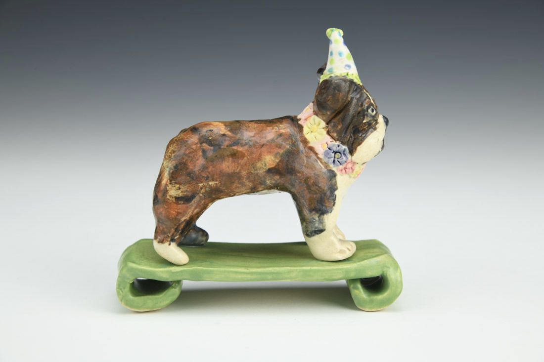White Stoneware, hand built, glaze, cone 6 oxidation fired, 4 x 1.5 x 4 inches.