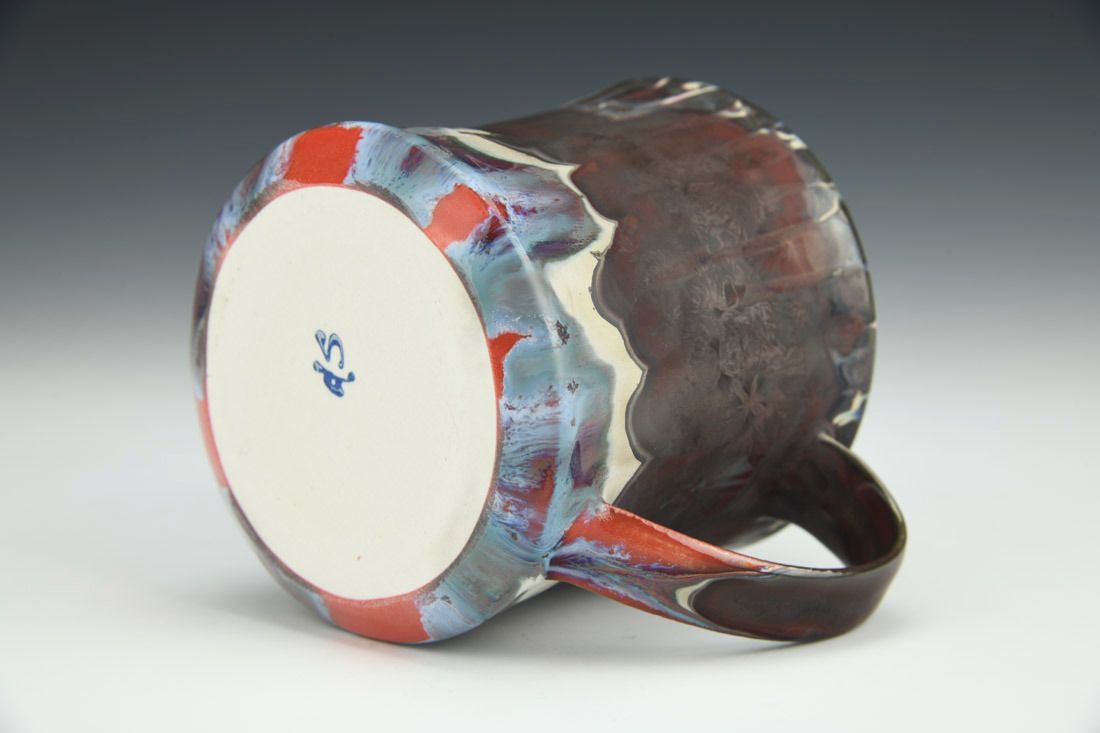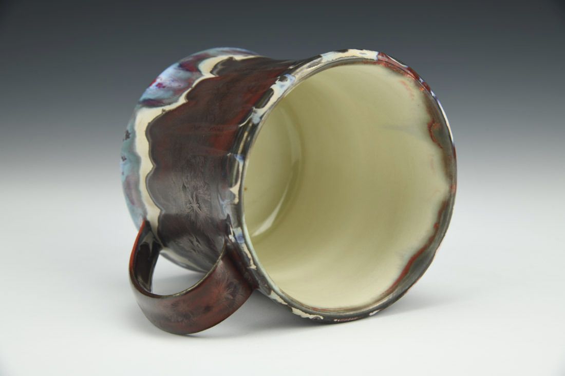 Porcelain, wheel thrown, slip, cone 10 electric fired, reduction cooled, 3.5 x 4.75 x 3.75 inches.