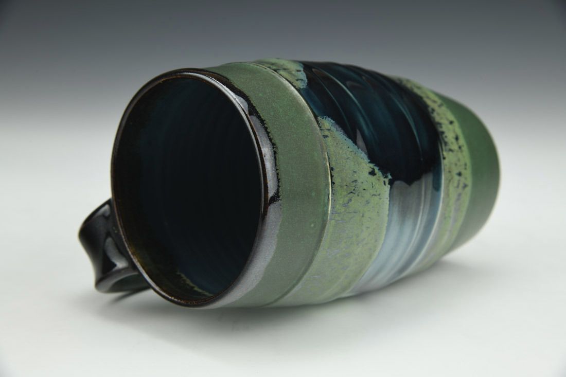 White stoneware, wheel thrown, cone 6 electric fired, 5.75 x 4.5 x 3.5 inches.