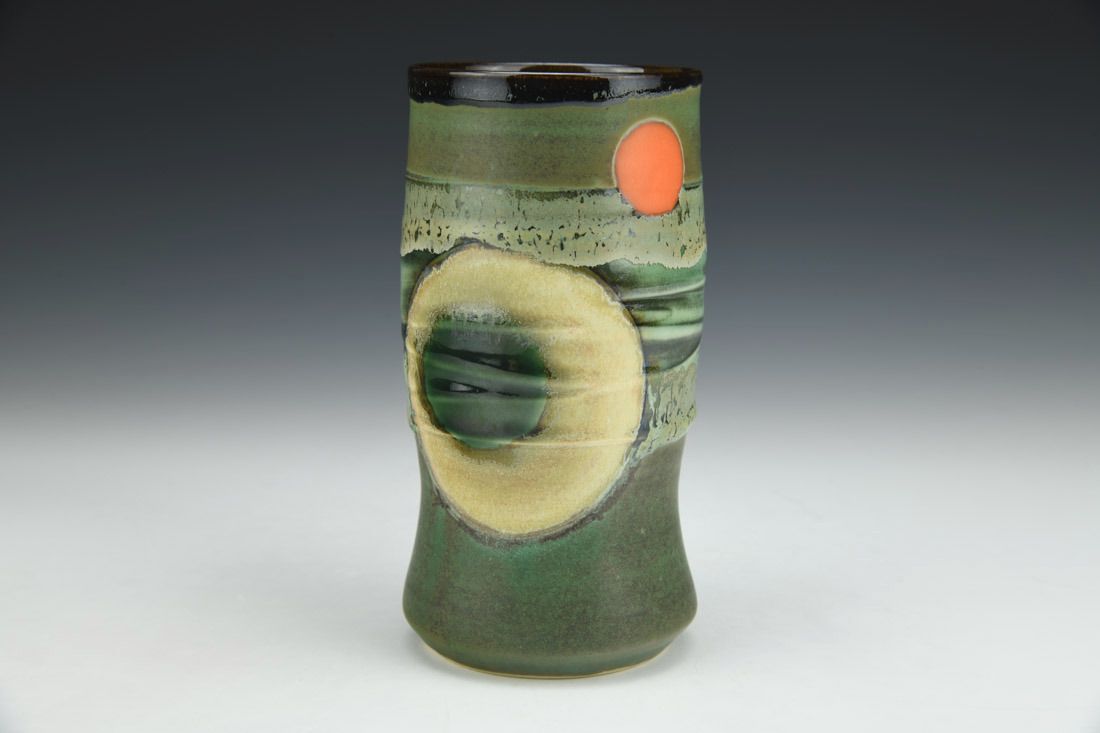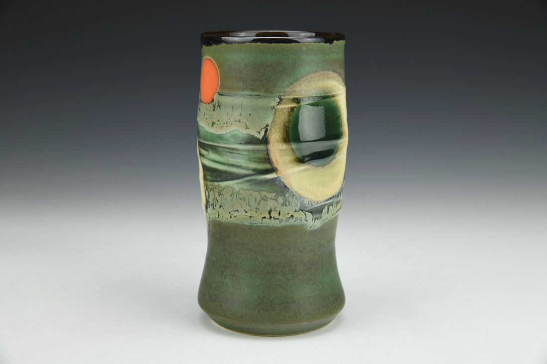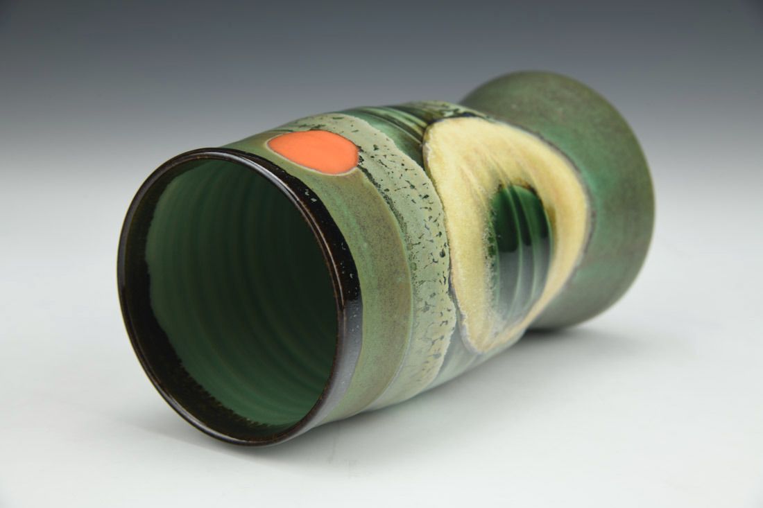 White stoneware, wheel thrown, cone 6 electric fired, 6.25 x 3.25 x 3.25 inches.