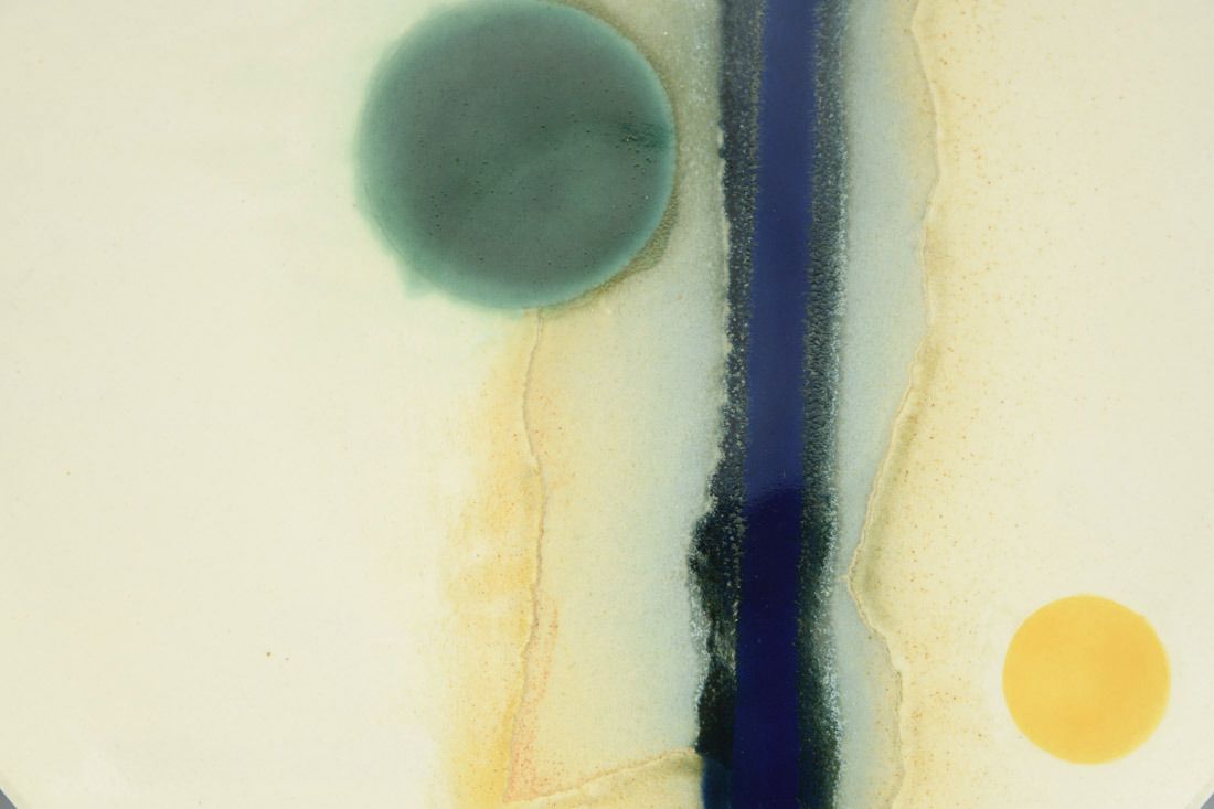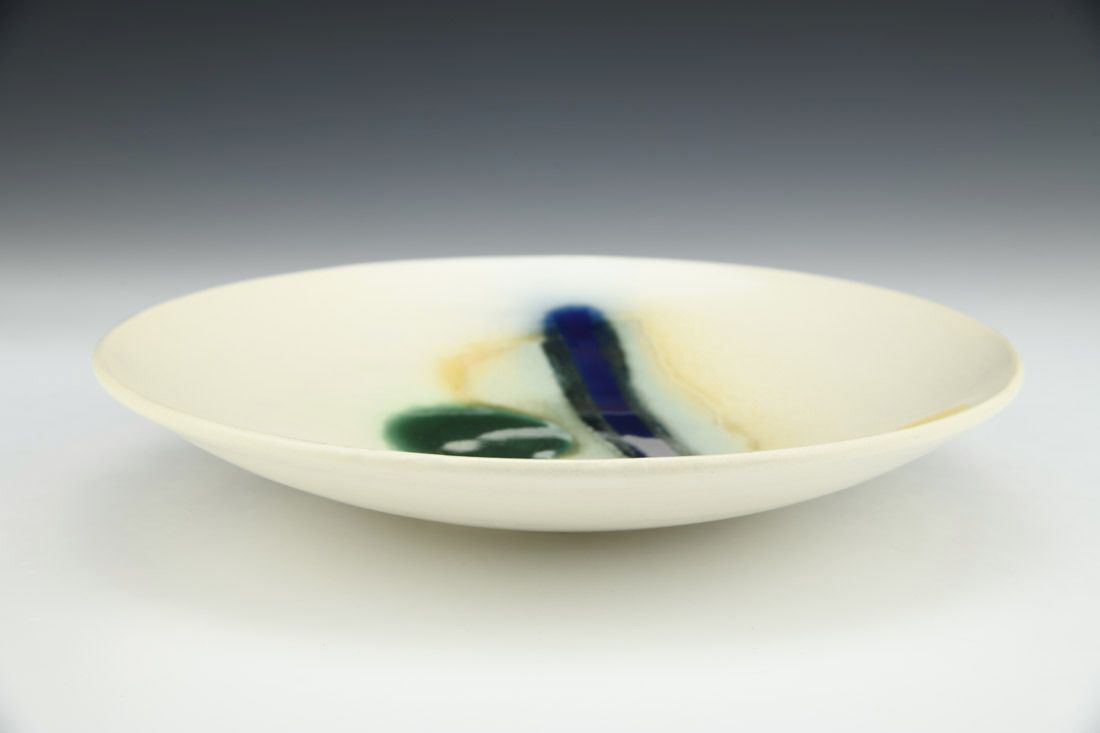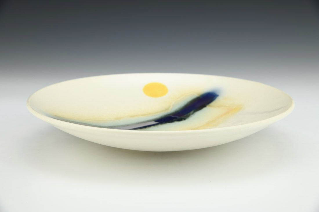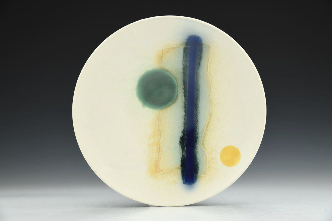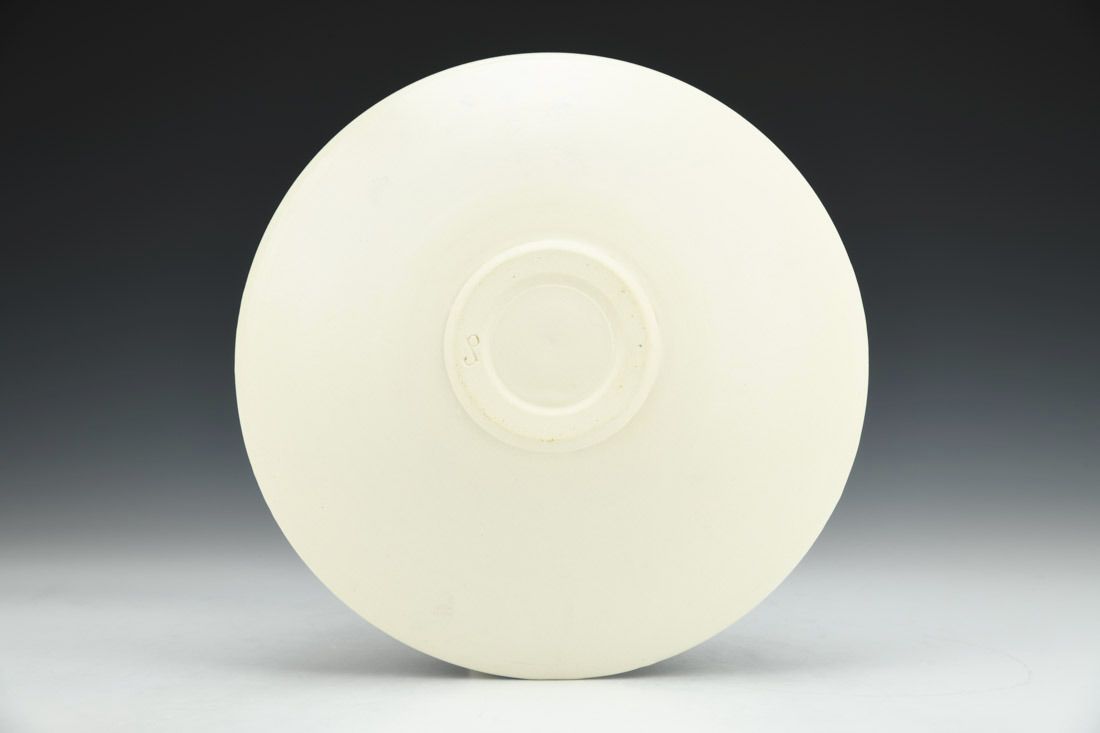 White stoneware, wheel thrown, cone 6 electric fired, 1.75 x 9.75 x 9.75 inches.