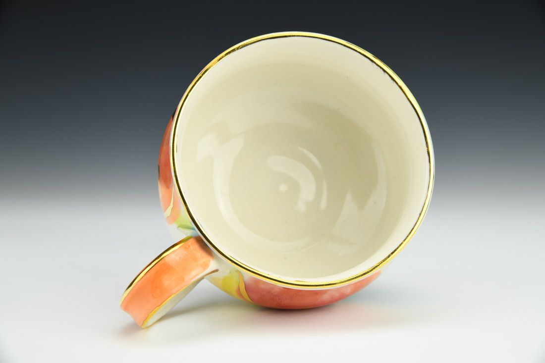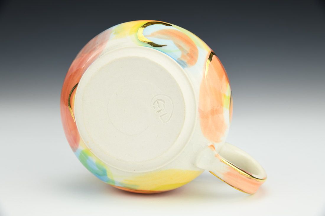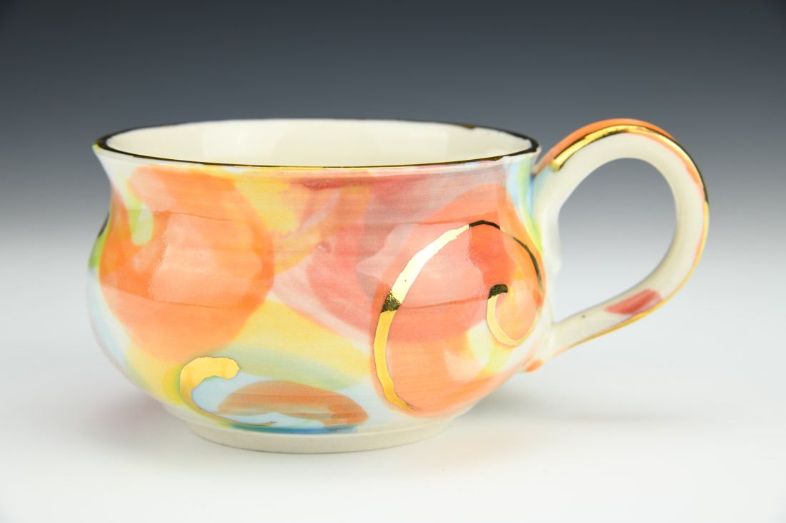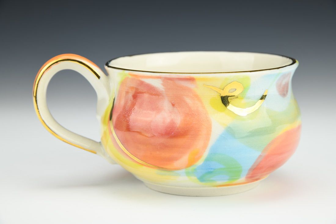 Porcelain, wheel thrown, underglaze, luster, high fired, 3 x 5.5 x 2.75 inches.
