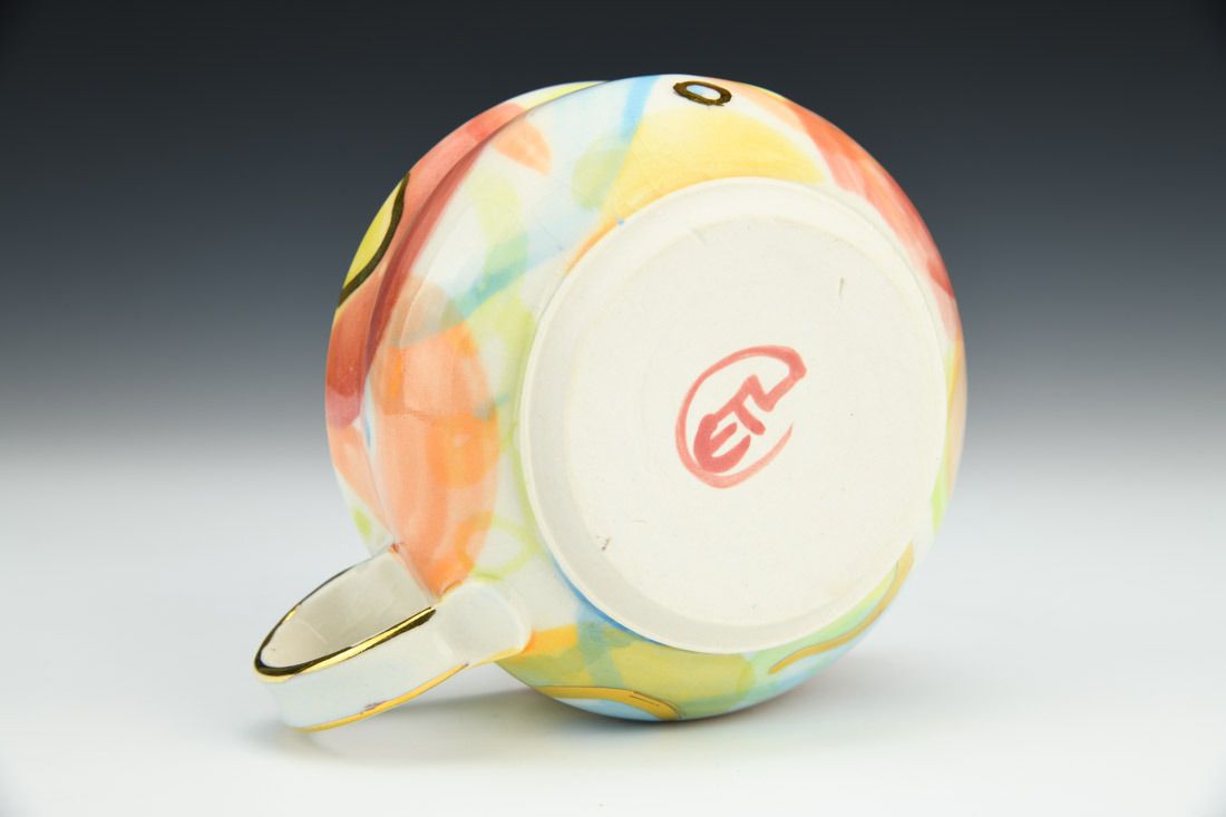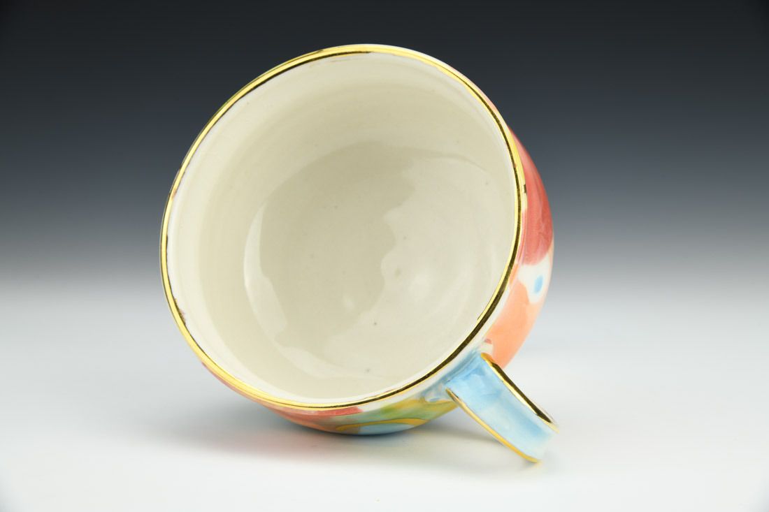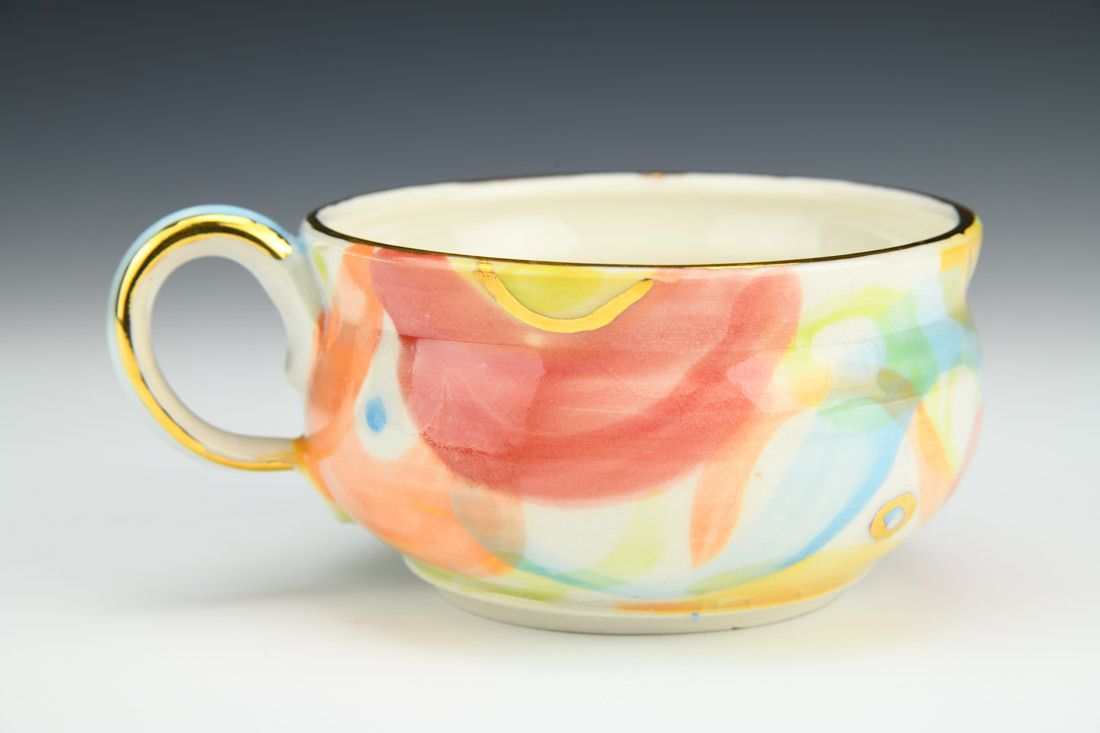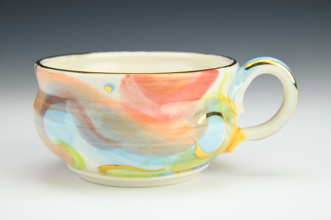 Porcelain, wheel thrown, underglaze, luster, high fired, 3 x 5.5 x 2.75 inches.