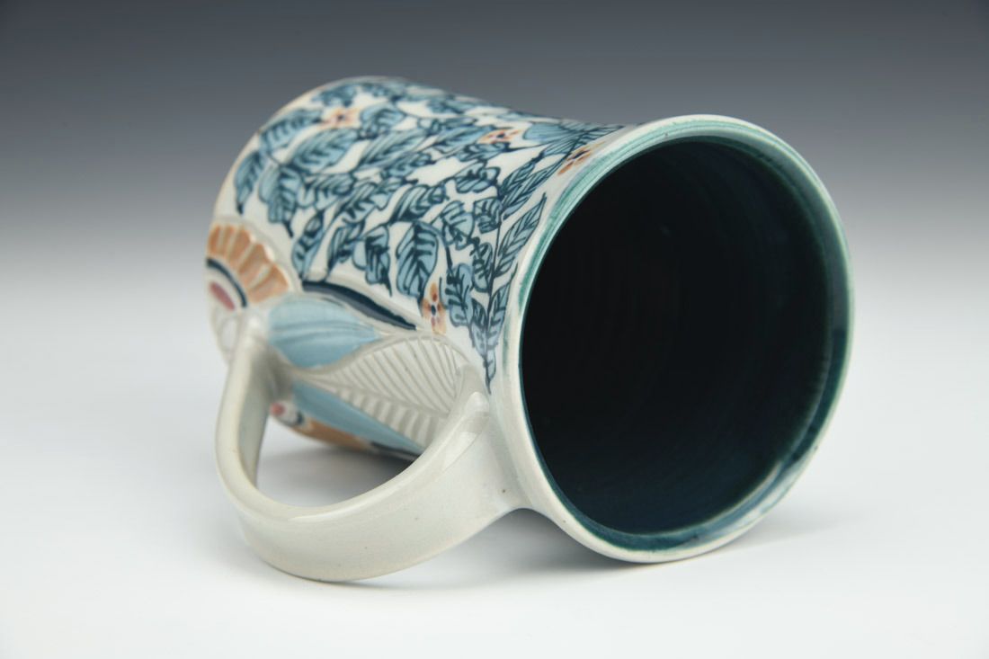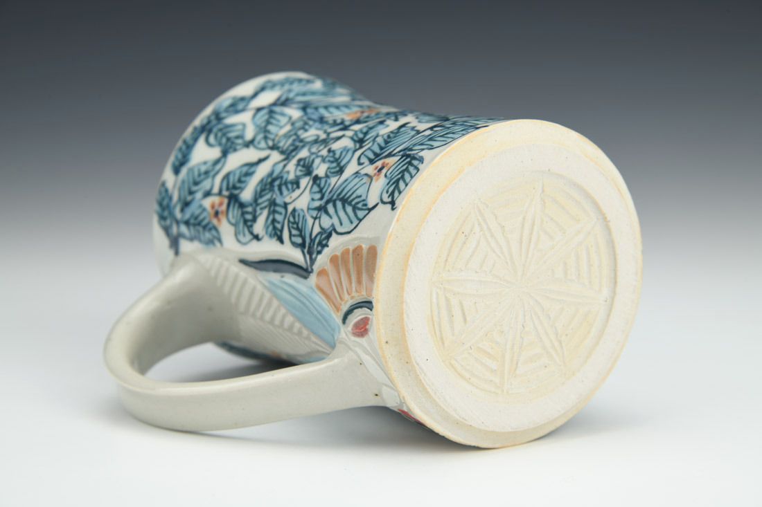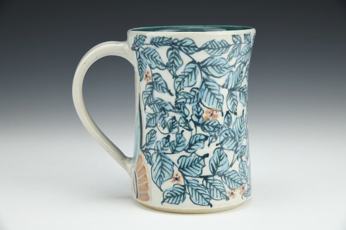 White stoneware, wheel thrown, hand painted, cone 10 reduction fired, 4.5 x 4.75 x 3.25 inches.