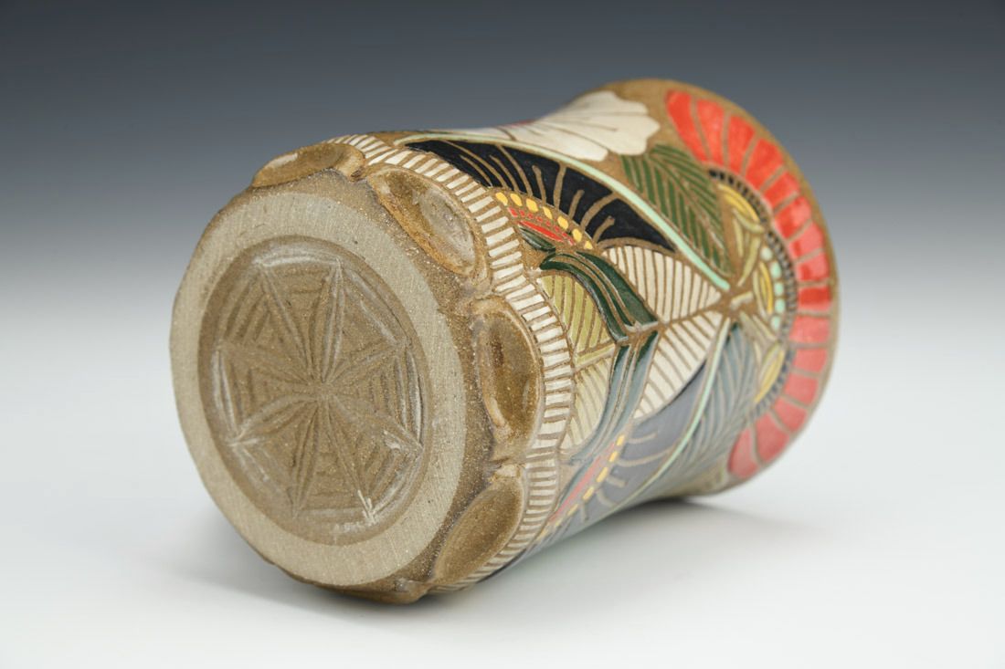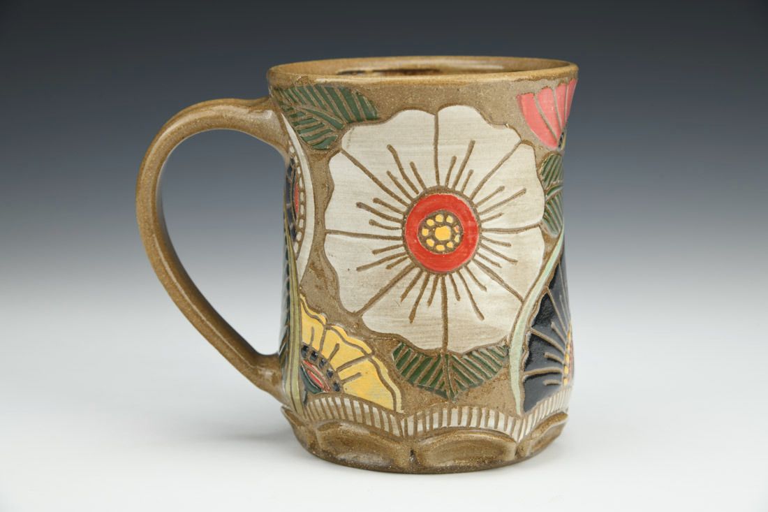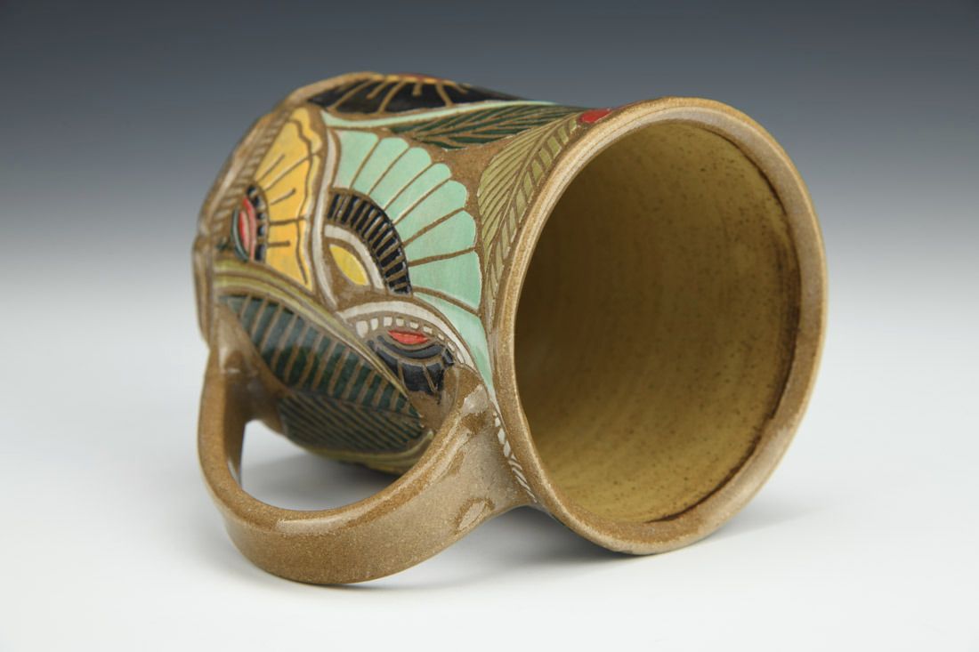 Stoneware, wheel thrown, sgraffito, cone 6 oxidation fired, 4.5 x 5.25 x 3.5 inches.