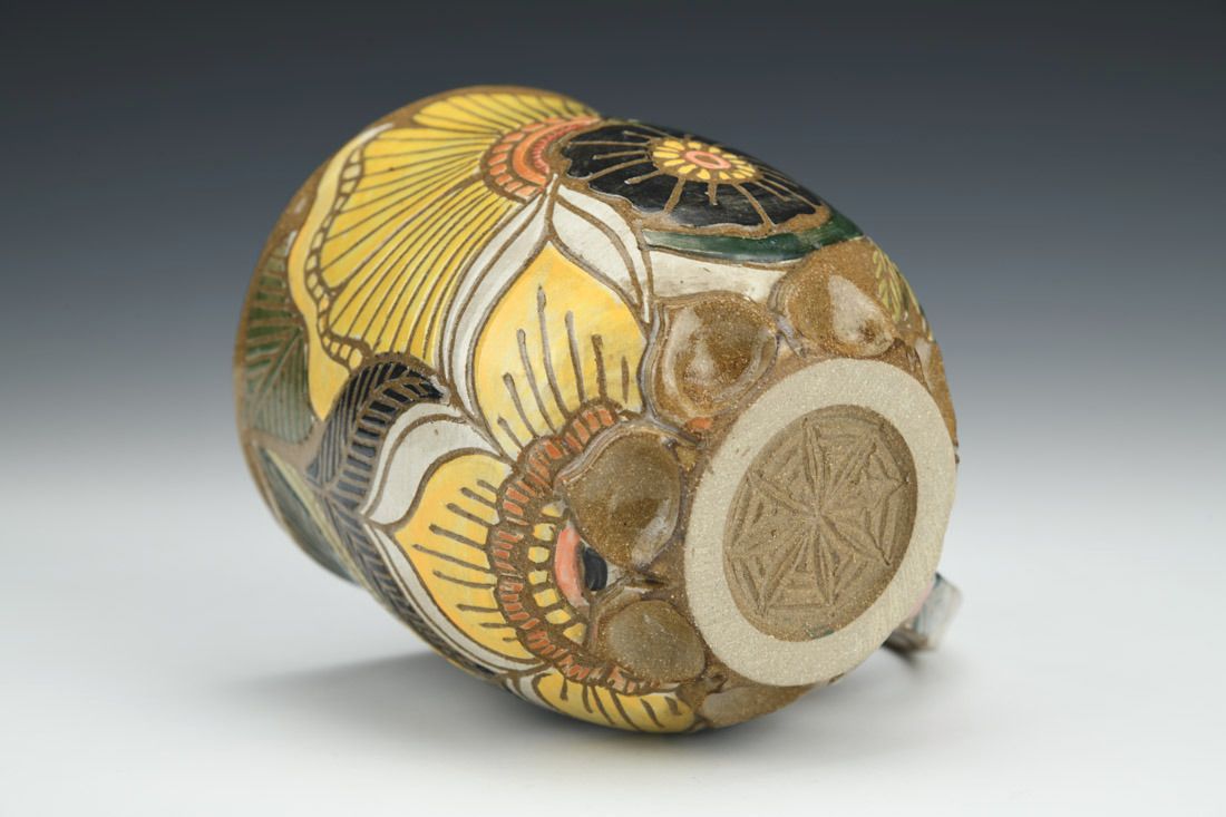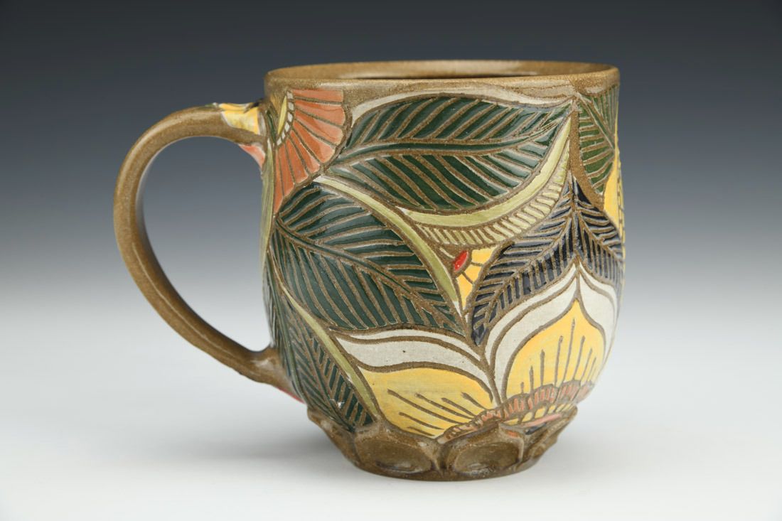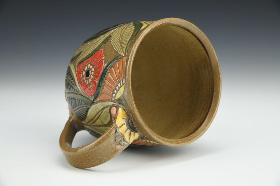 Stoneware, wheel thrown, sgraffito, cone 6 oxidation fired, 4.25 x 5.5 x 3.75 inches.