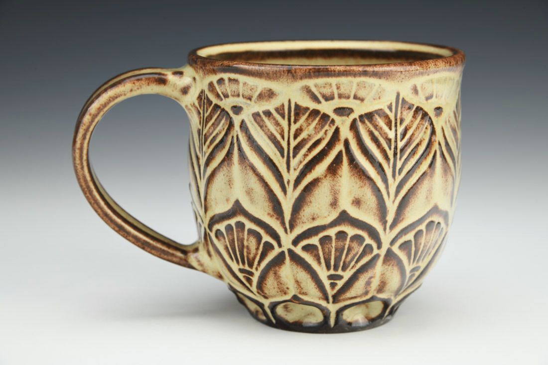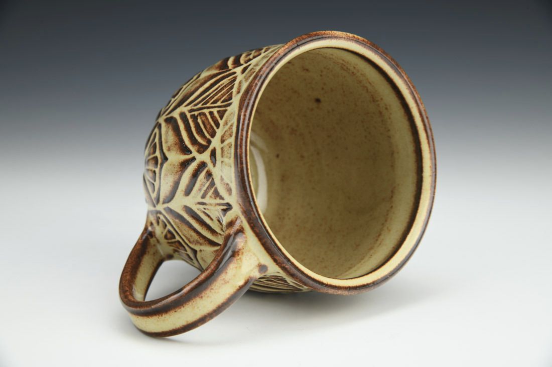 Chocolate clay, wheel thrown, carved, cone 5 oxidation fired, 3.75 x 5.25 x 3.75 inches.