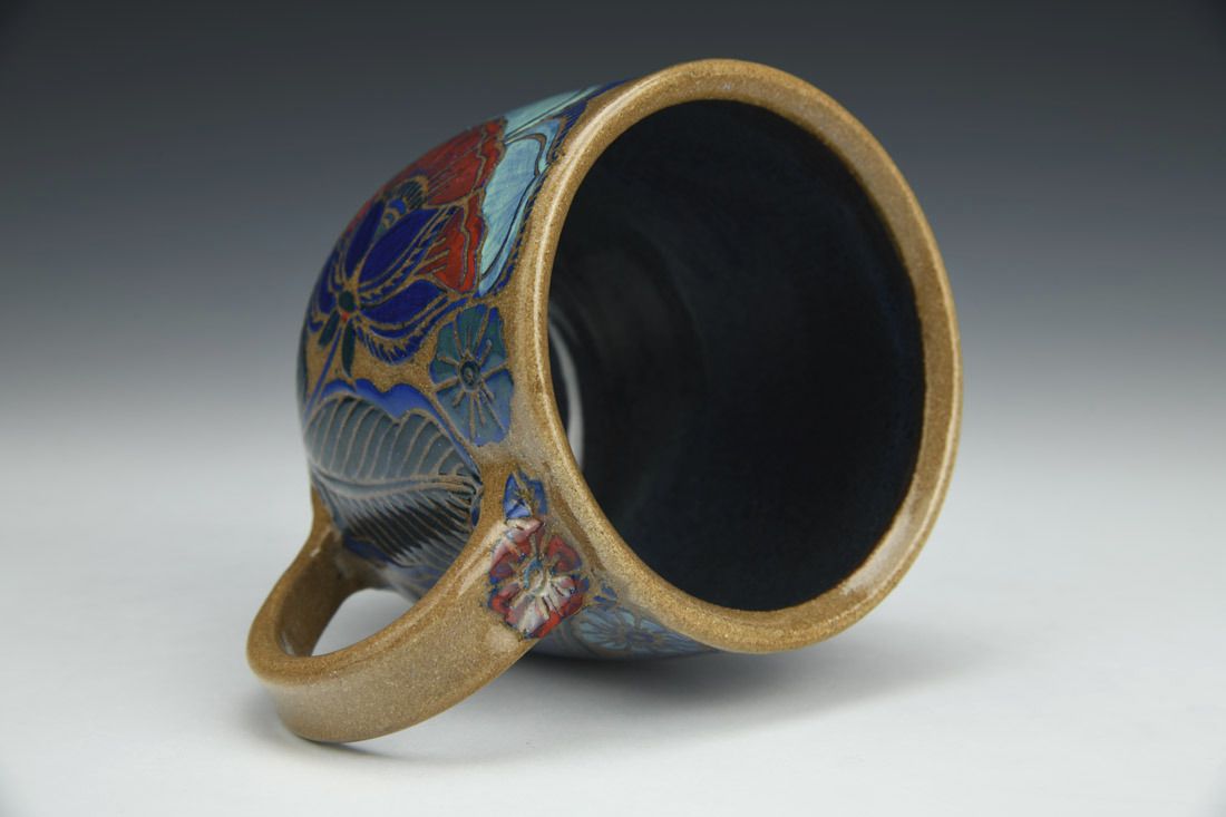 Stoneware, wheel thrown, sgraffito, cone 6 oxidation fired, 3.75 x 5.5 x 4 inches.