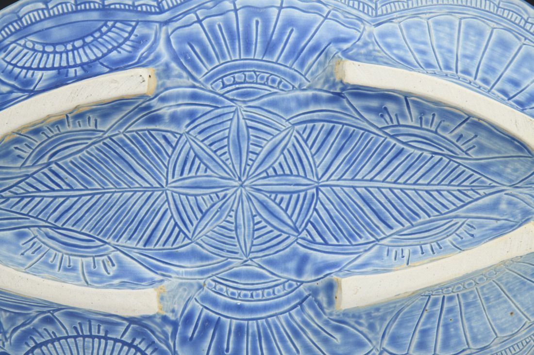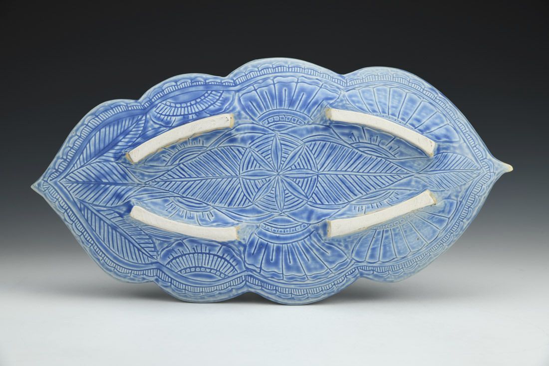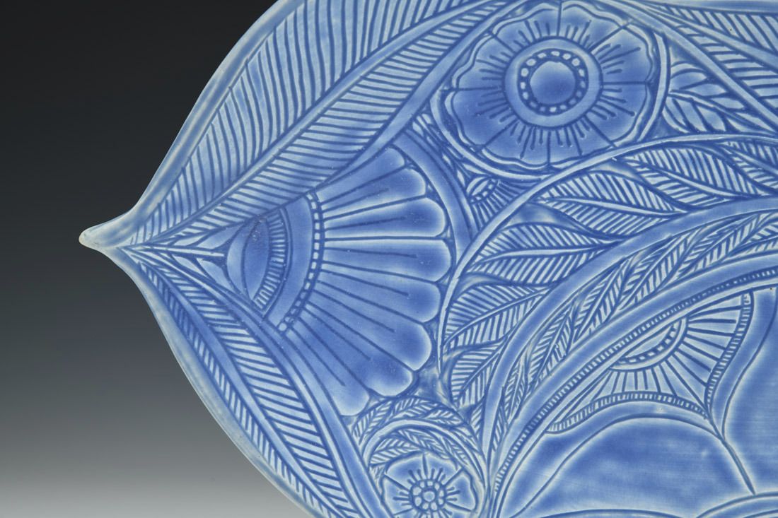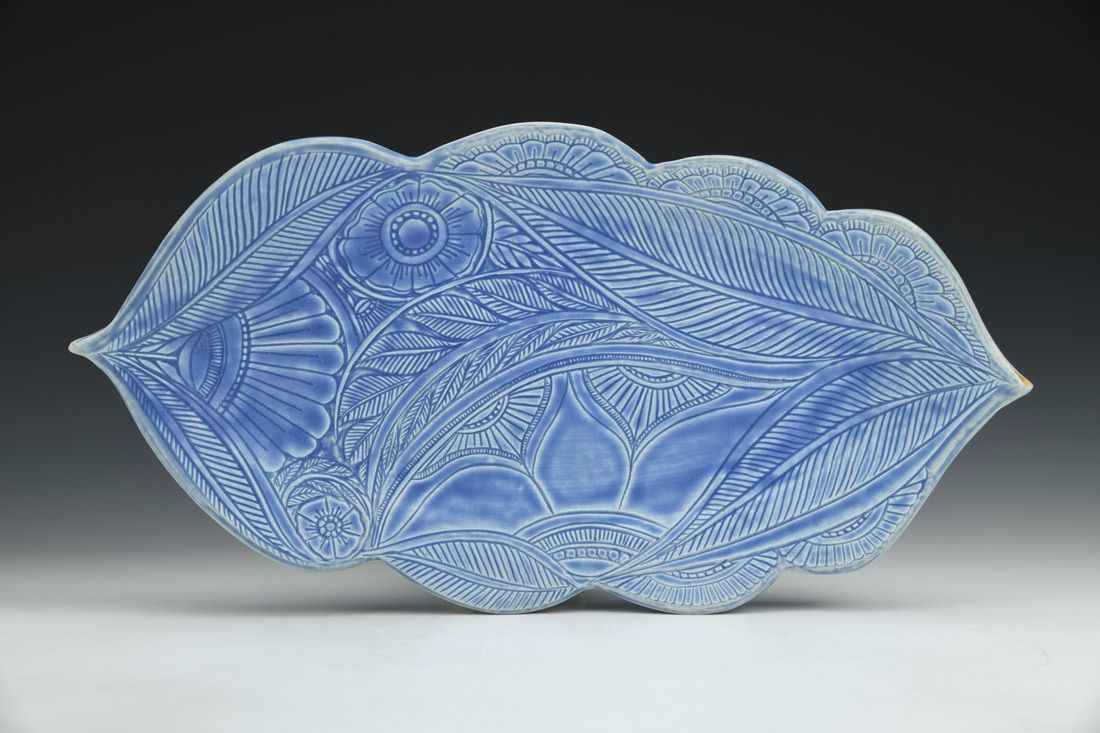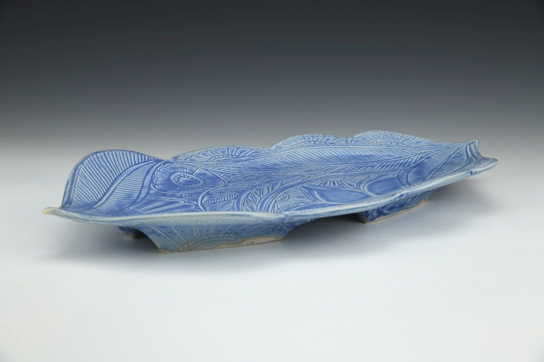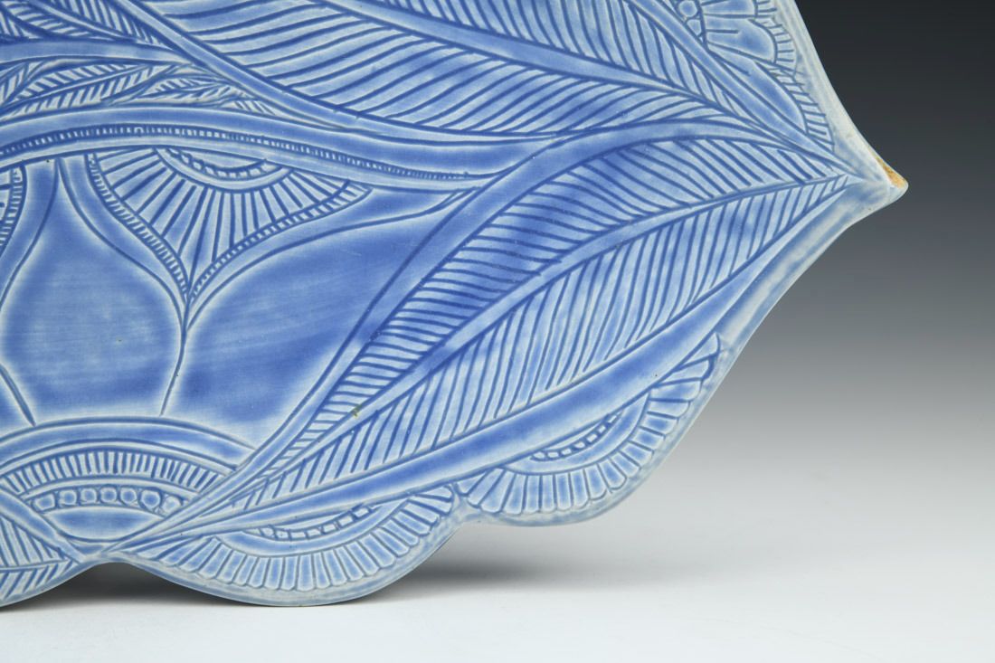 White stoneware, hand built, sgraffito, cone 10 fired, 1.5 x 15.25 x 8 inches.