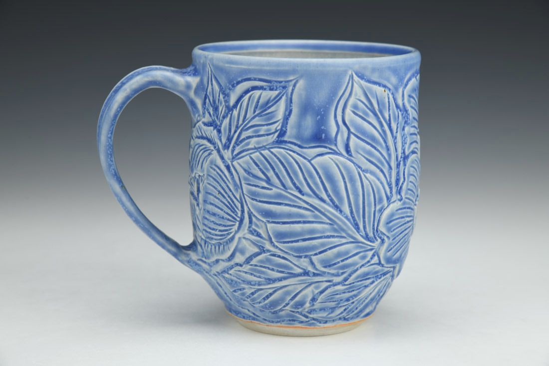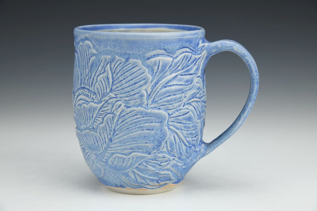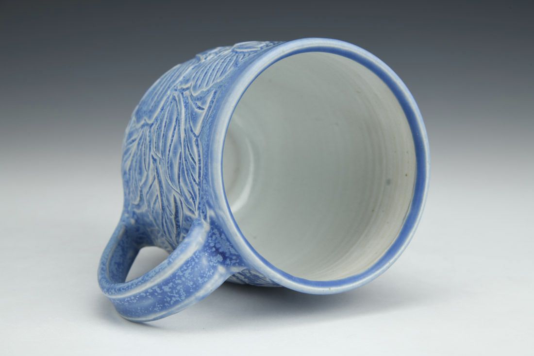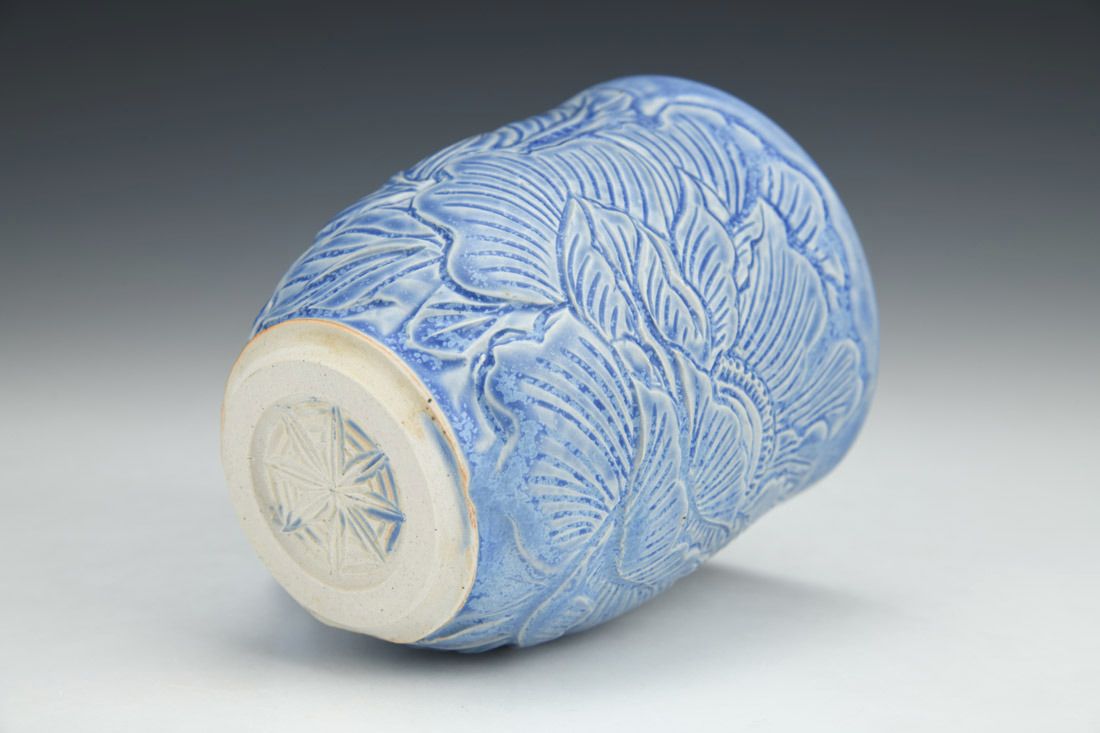 White stoneware, wheel thrown, carved, cone 10 reduction fired, 4.25 x 5 x 3.5 inches.