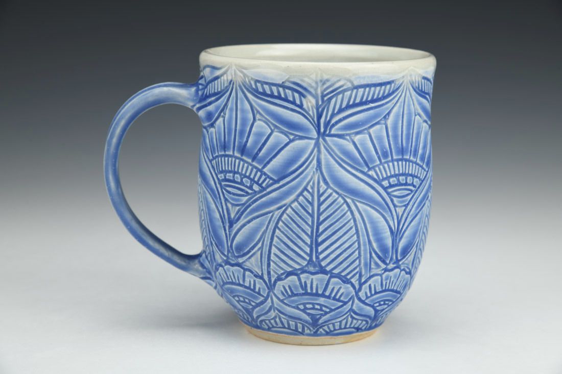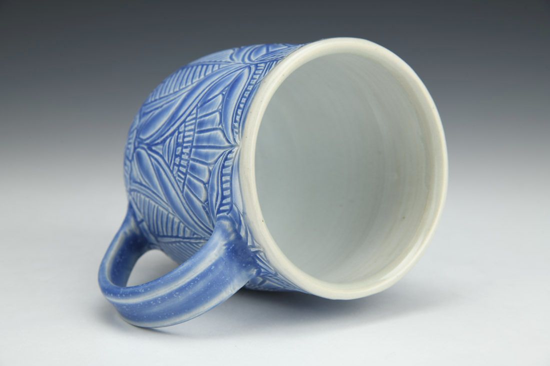 White stoneware, wheel thrown, sgraffito, cone 10 reduction fired, 4.25 x 5 x 3.5 inches.