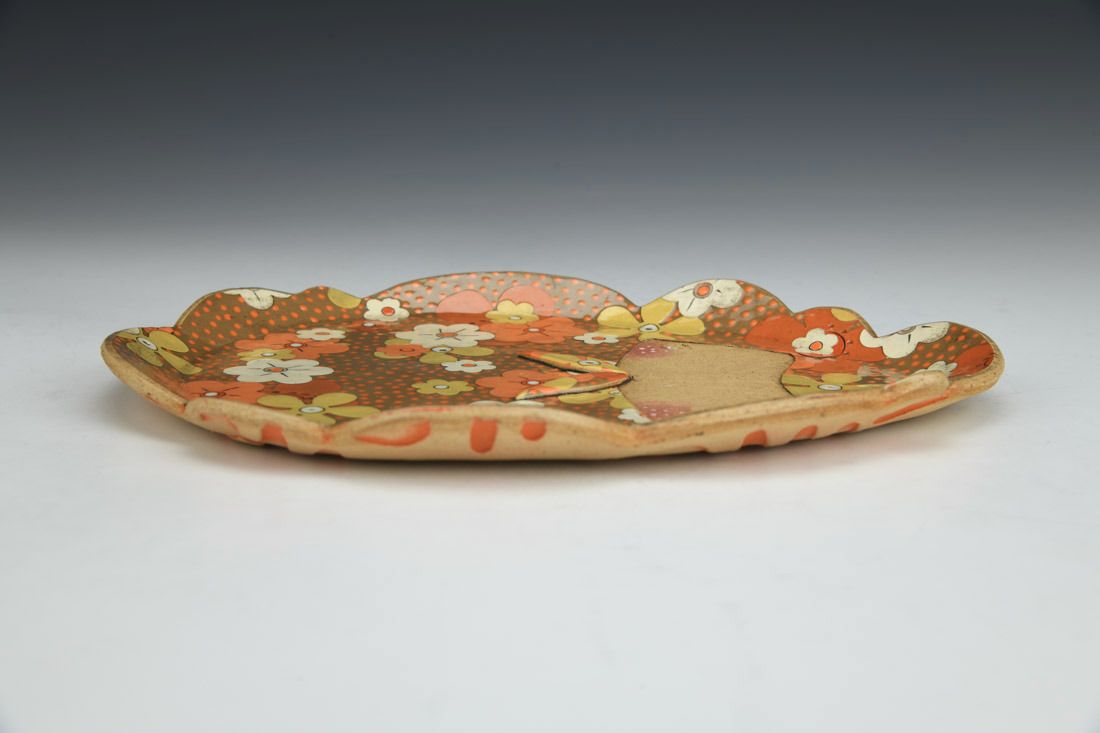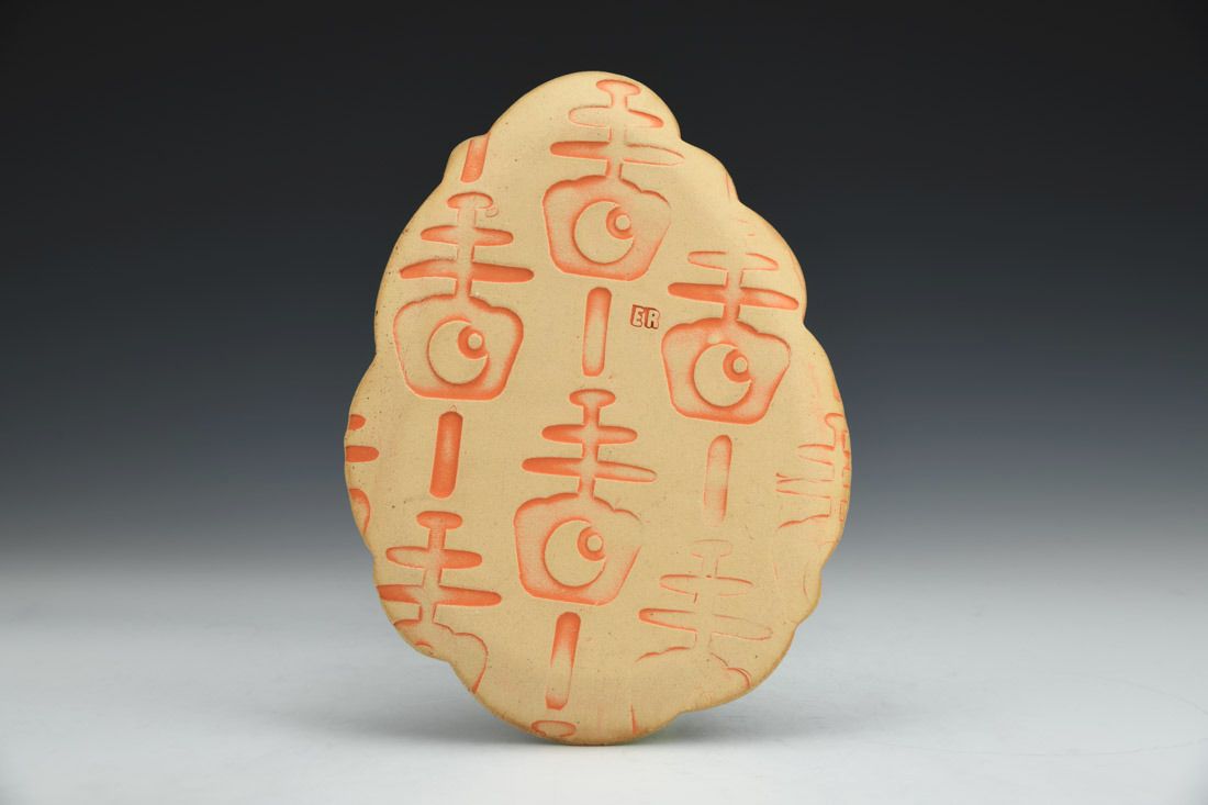 Buff stoneware with Liquid Quartz, hand built with slabs, glazed, cone 5 fired, 0.75 x 8.5 x 6.5 inches.