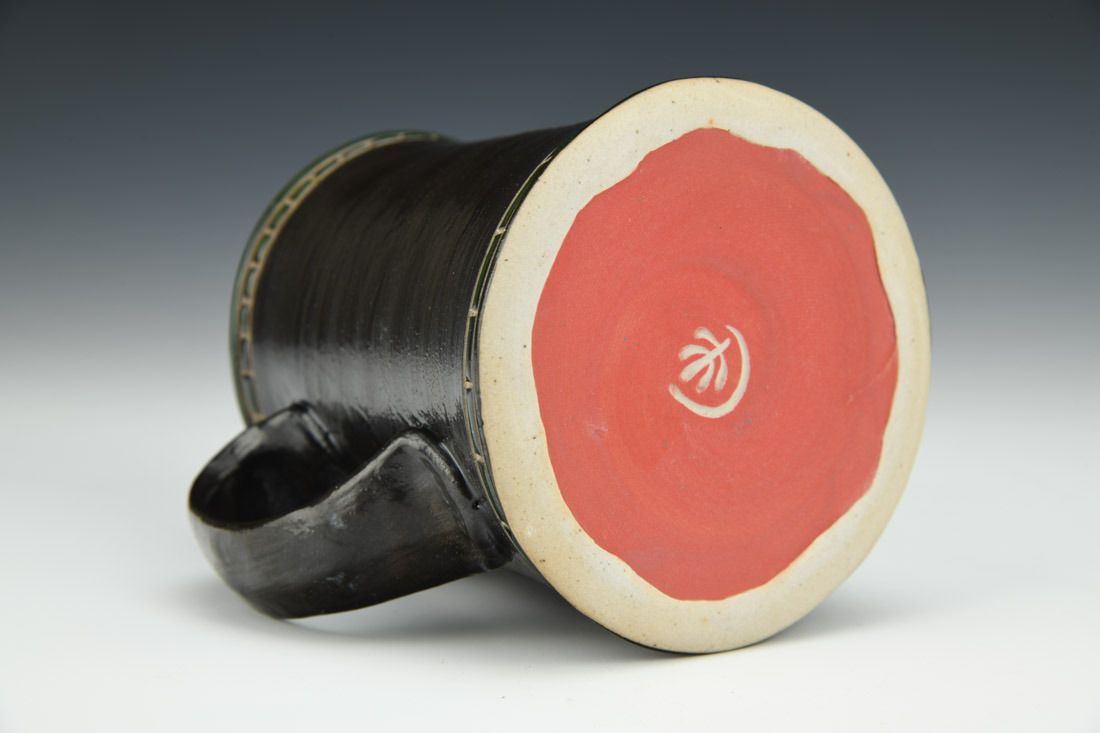 Stoneware, wheel thrown, sgrafitto, luster, glaze inlay, cone 10 gas reduction fired, 4 x 4.75 x 3.75 inches.