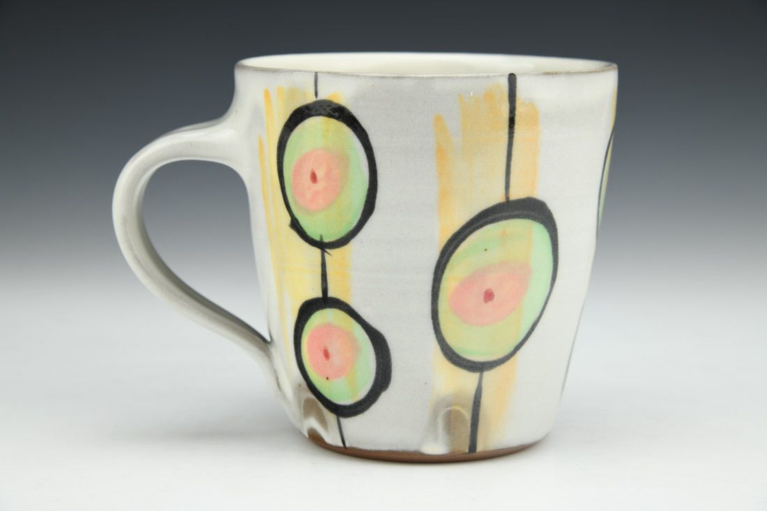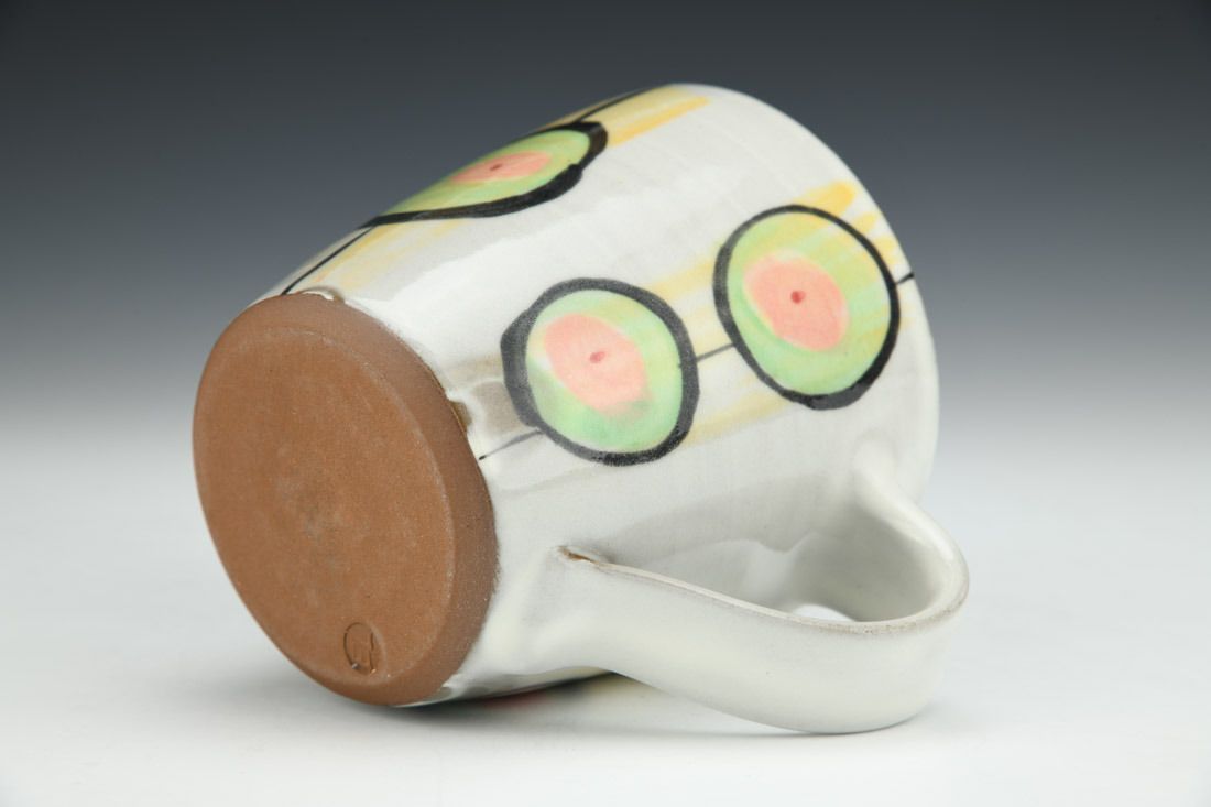 Stoneware, wheel thrown, slip, cone 6 oxidation fired, 3.75 x 4.75 x 3.75 inches.