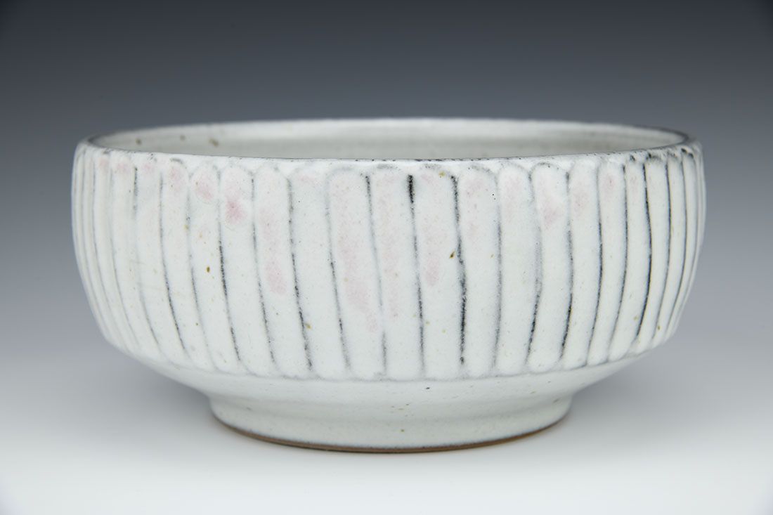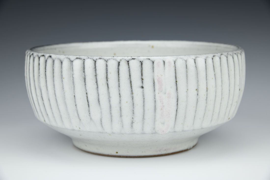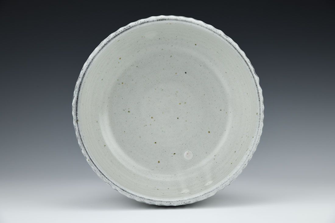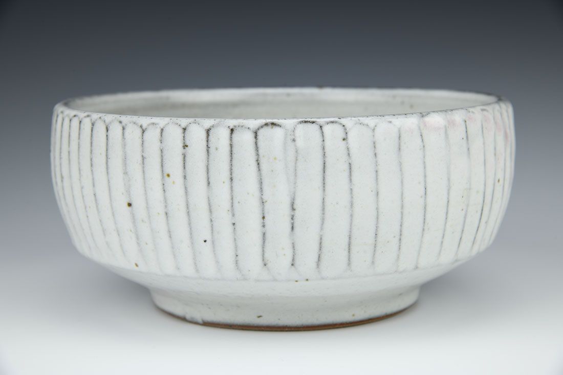 Stoneware, wheel thrown and fluted, nuka glaze, 3.5 x 7.5 x 7.5 inches.
