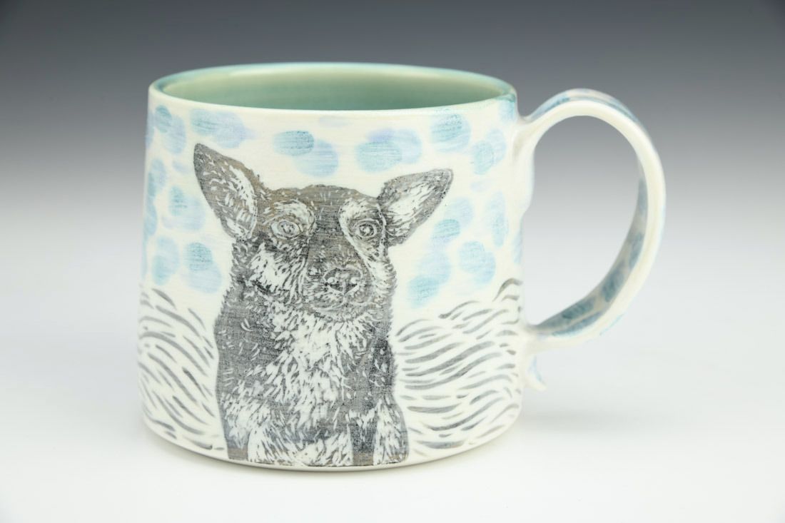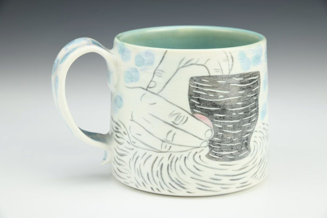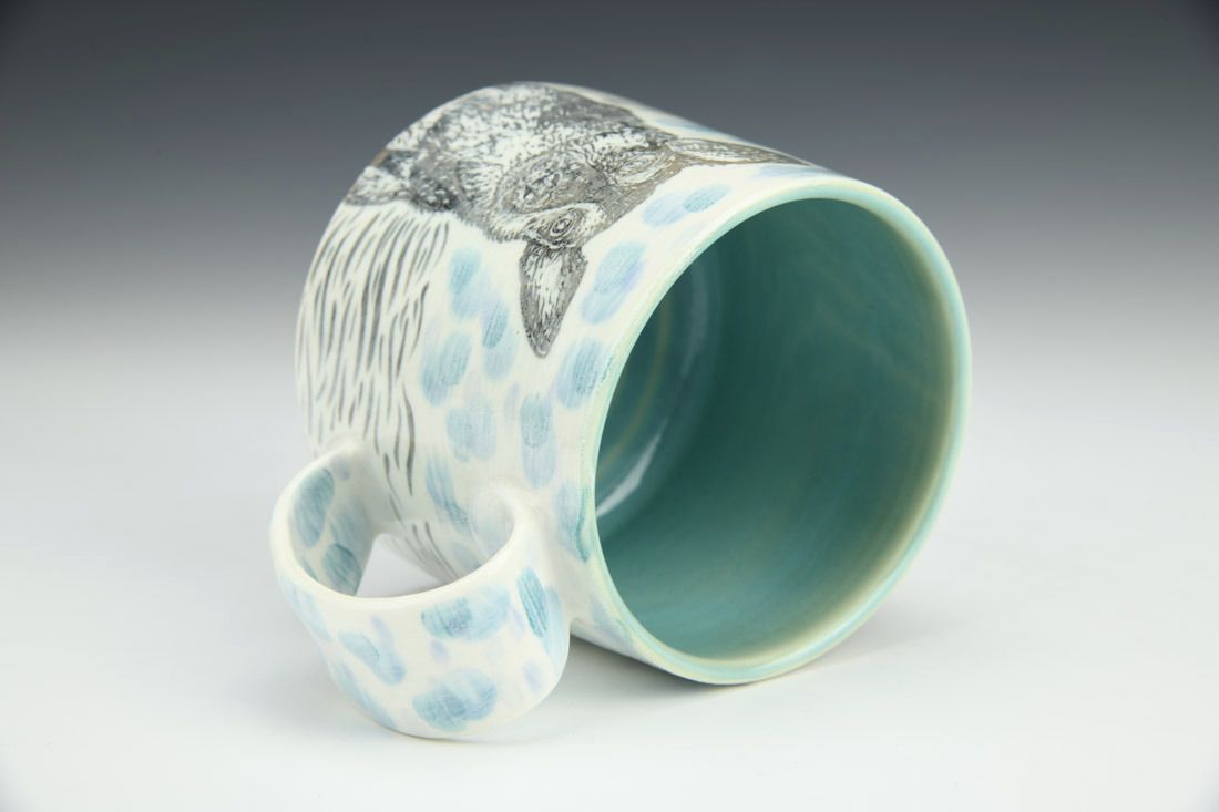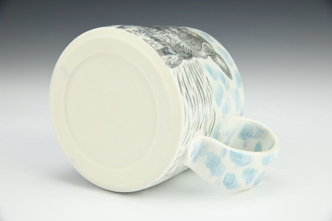 Porcelain, wheel thrown, hand painted, carved, underglaze, glaze, electric fired, 3.25 x 5 x 3.75 inches.