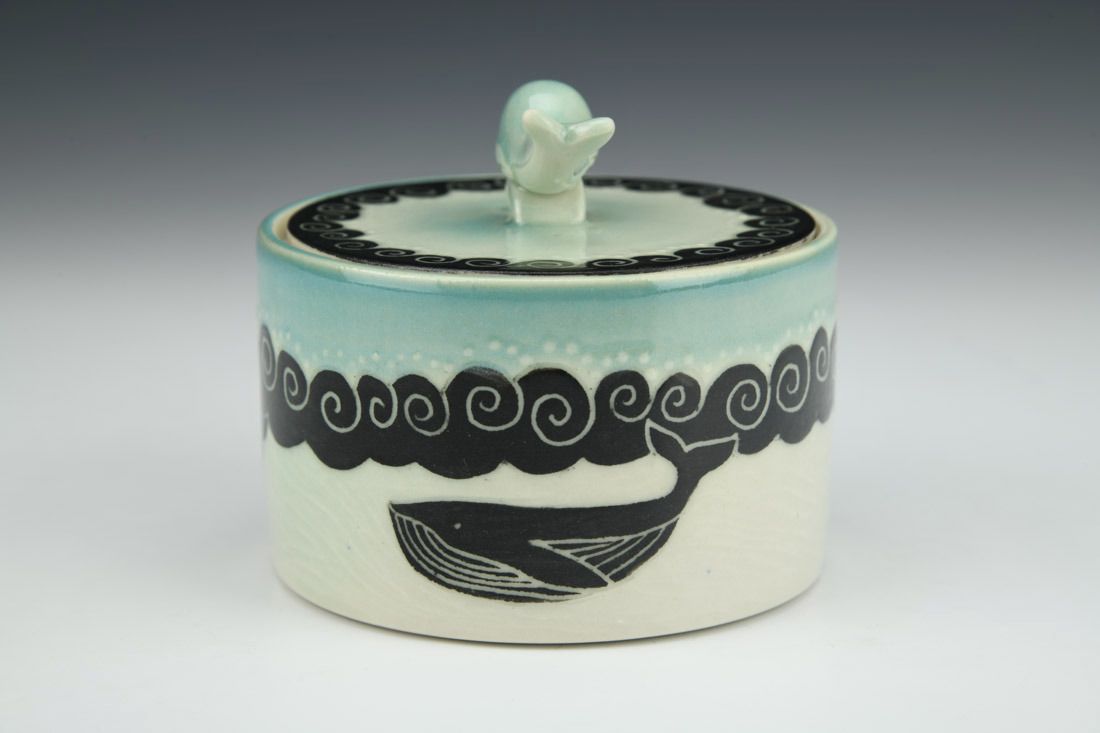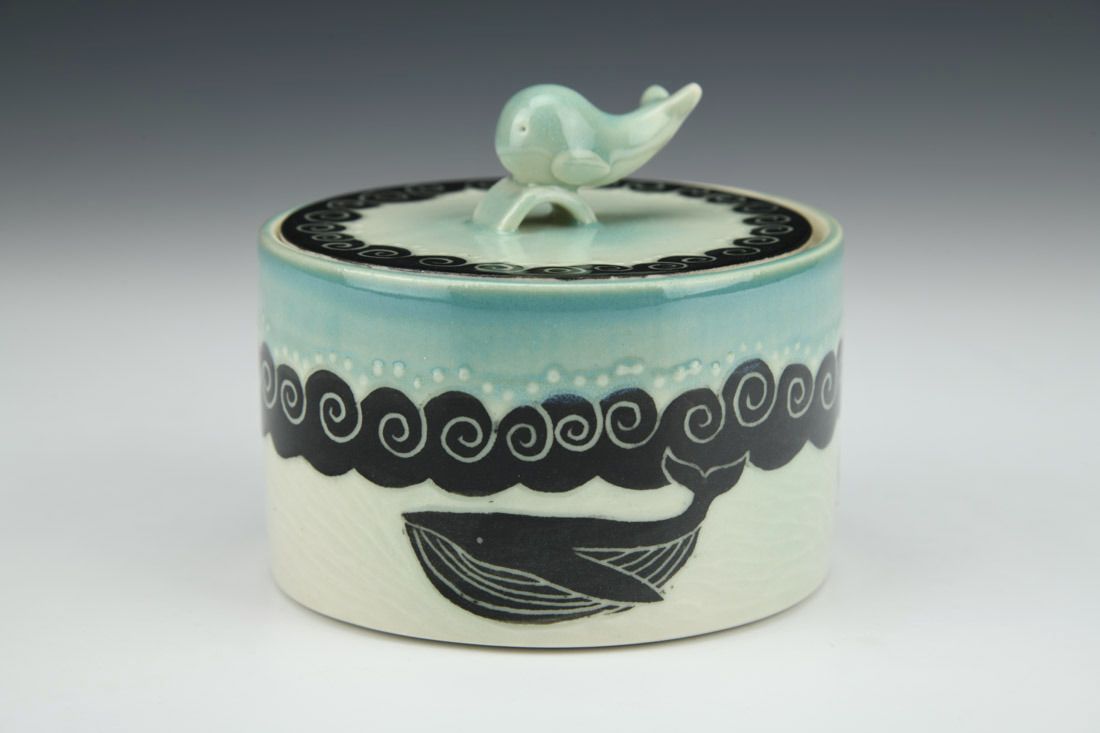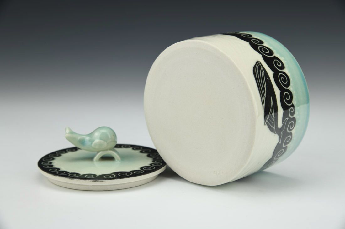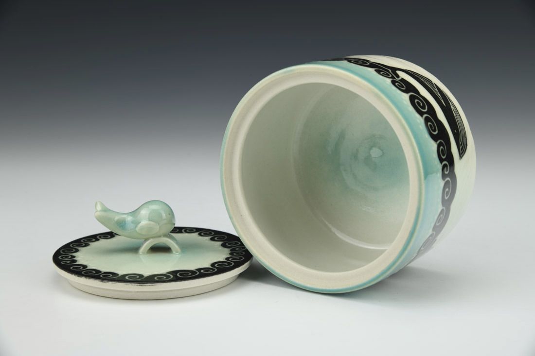 Porcelain, wheel thrown, glaze, cone 9 oxidation fired, 3.25 x 3.75 x 3.75 inches.
