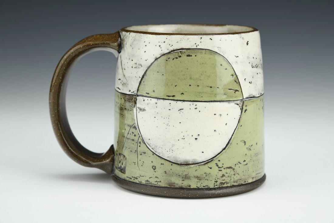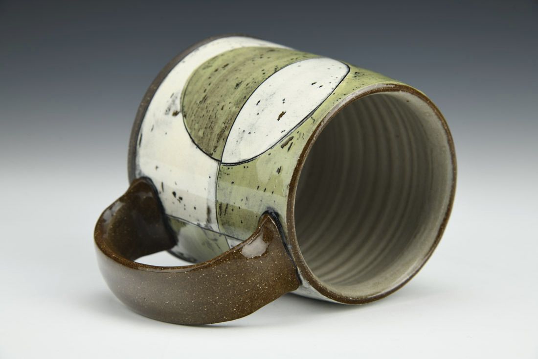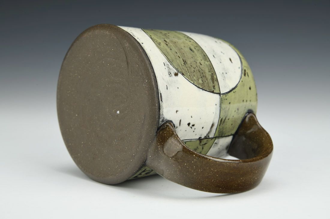 Stoneware, wheel thrown, monoprinted slip transfer, 3.5 x 4.75 x 3.5 inches.