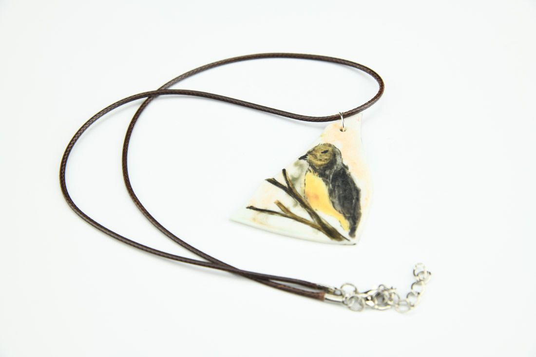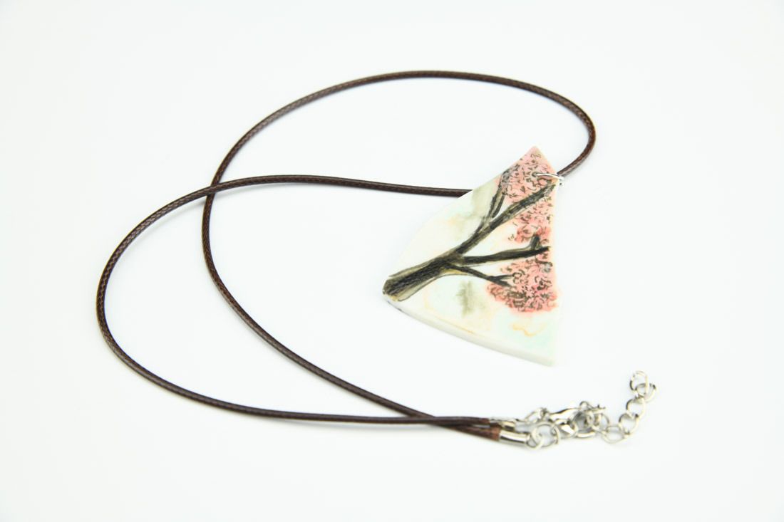 Porcelain with woven cord necklace chain, hand built, cone 6 fired, pendant: 2 x 1.5 x 0.25 inches, chain: 18 inches.