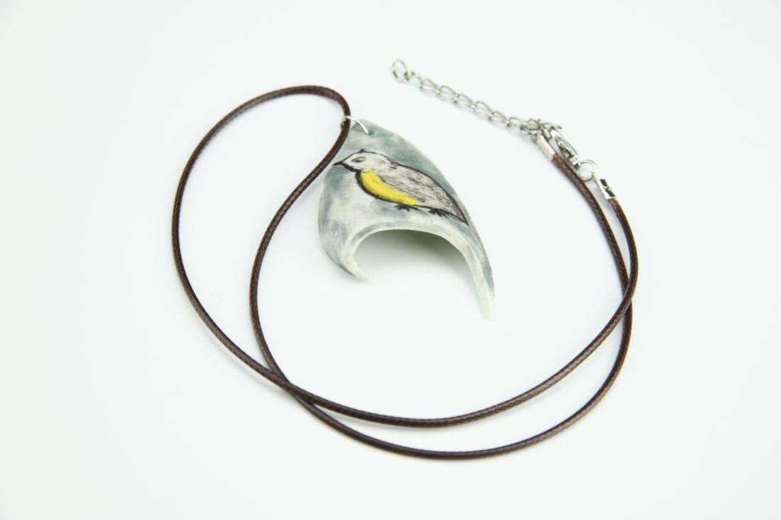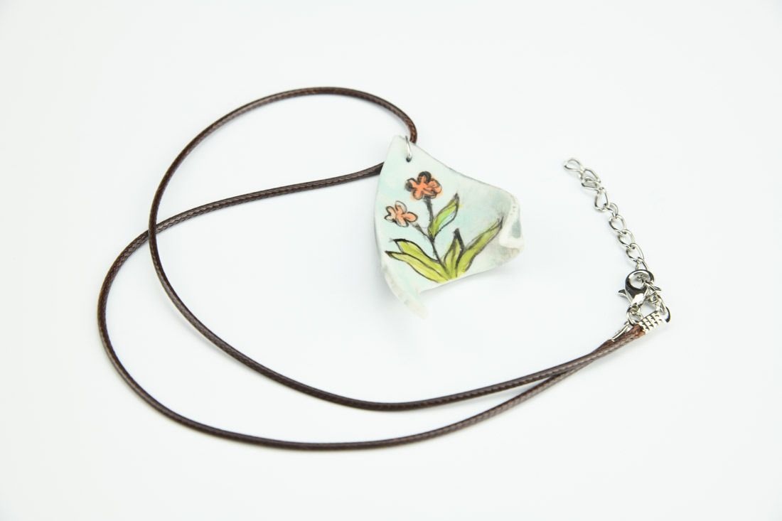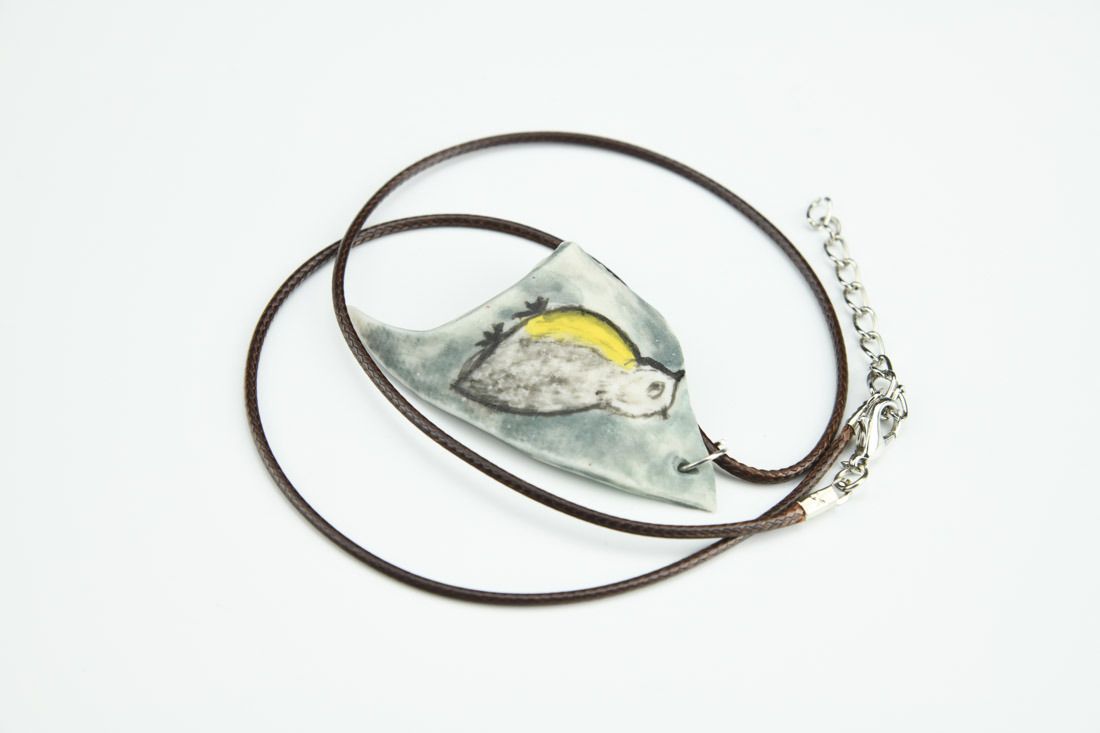 Porcelain with woven cord necklace chain, hand built, cone 6 fired, pendant: 2.5 x 1.5 x 0.25 inches, chain: 18 inches.