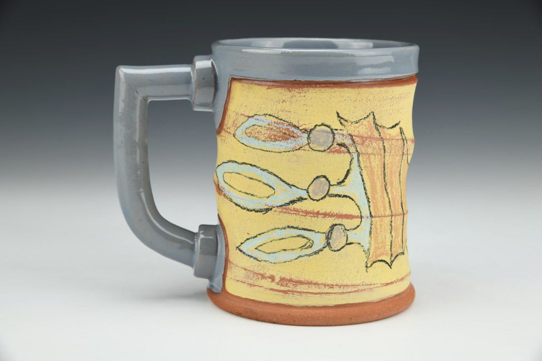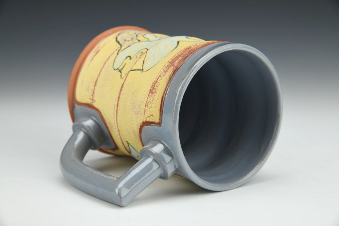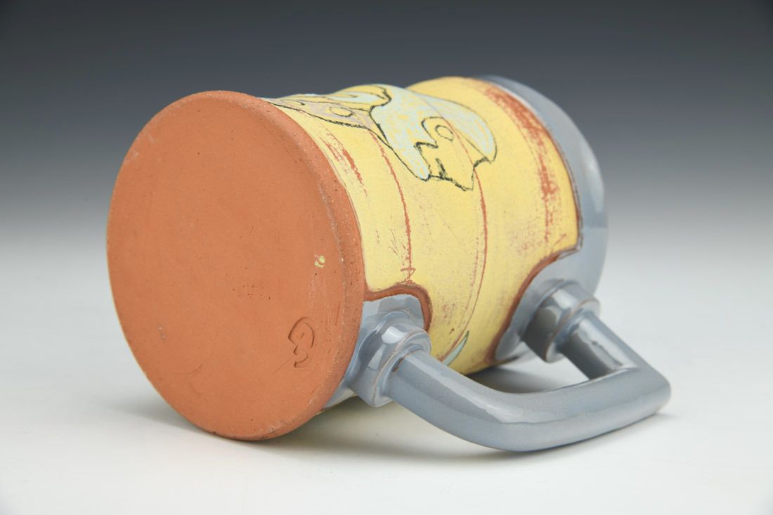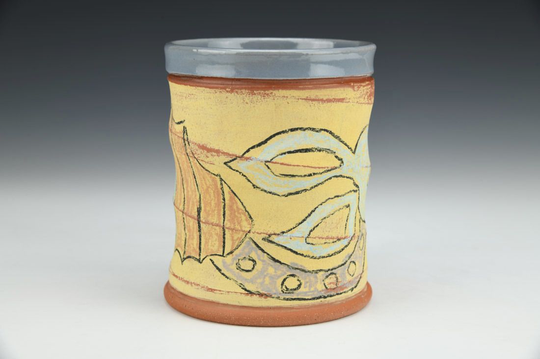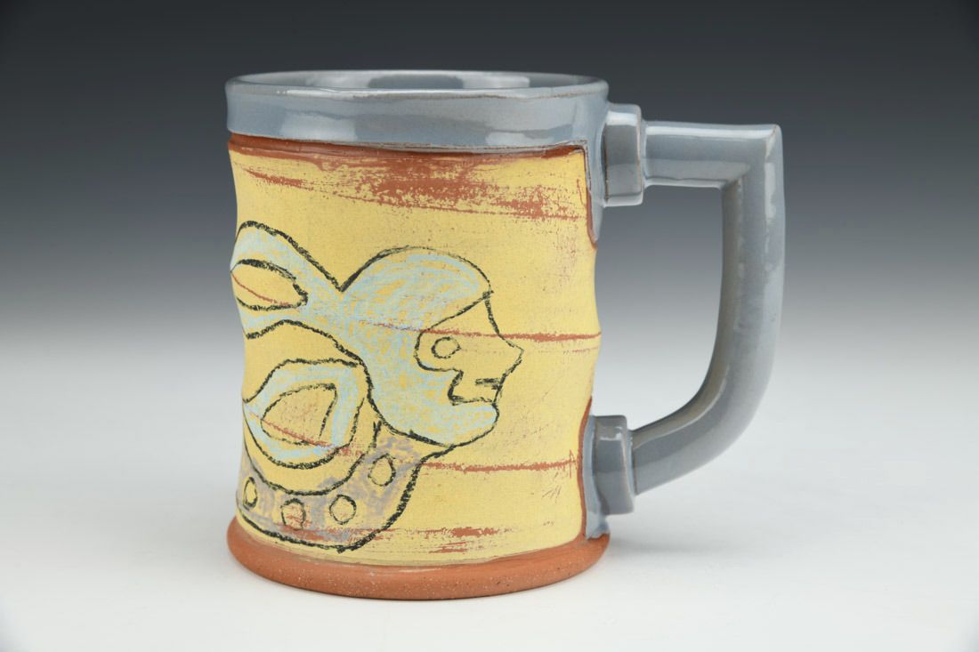 Terra cotta, wheel thrown, pareidolia stream of conciousness drawing, underglaze, underglaze chalk, glaze, multiple firings, 4.5 x 5 x 3.5 inches.