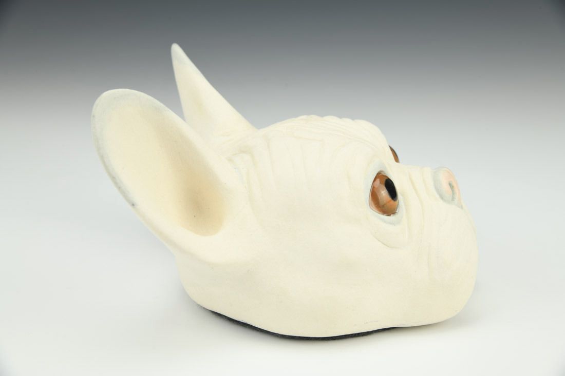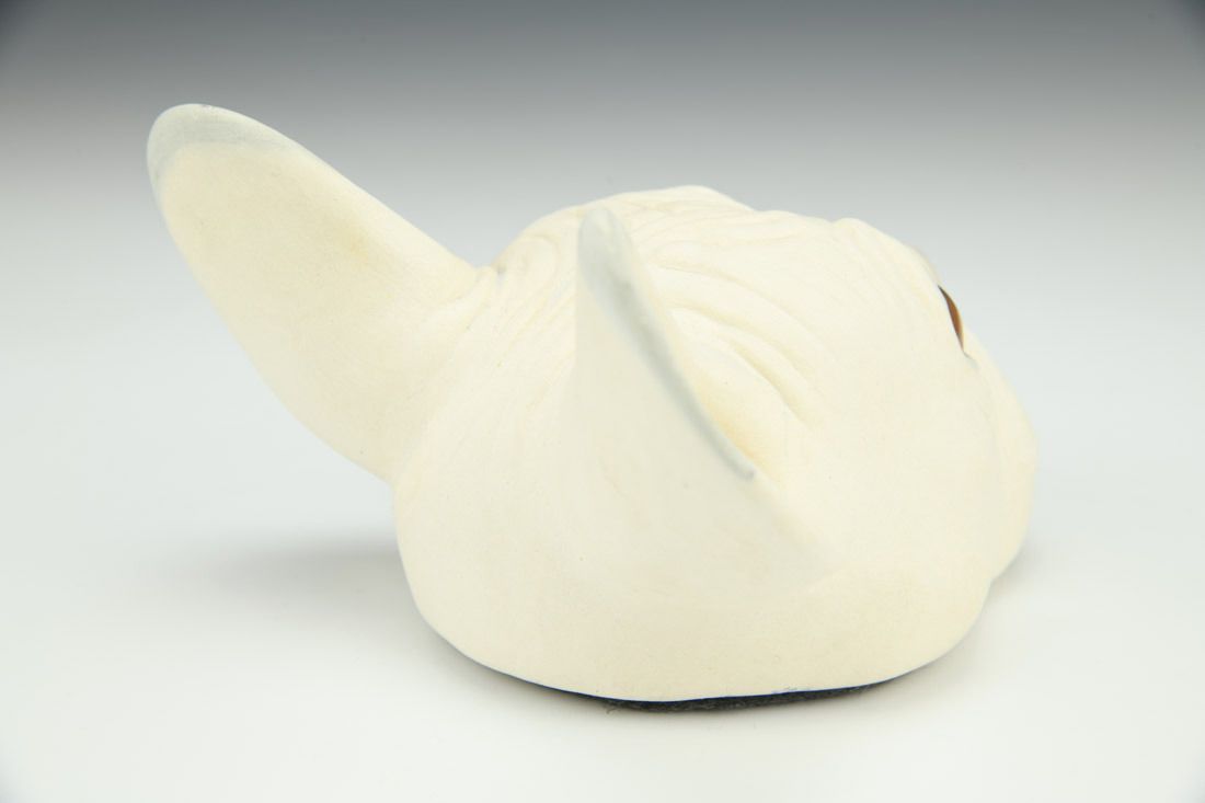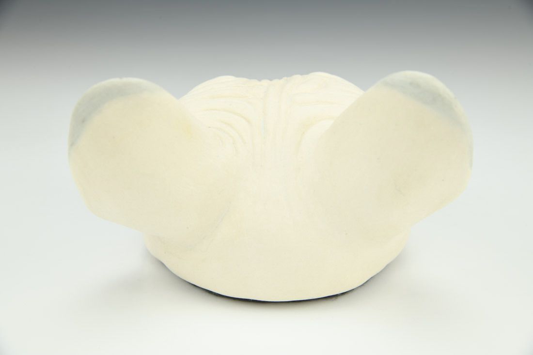 Porcelain and felt, handbuilt, underglaze, glaze, matte acrylic varnish, cone 6 oxidation fired, 3.5 x 5 x 4.75 inches.
